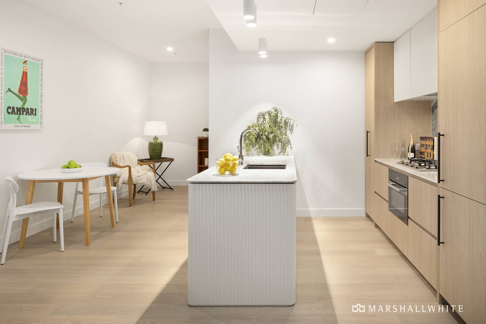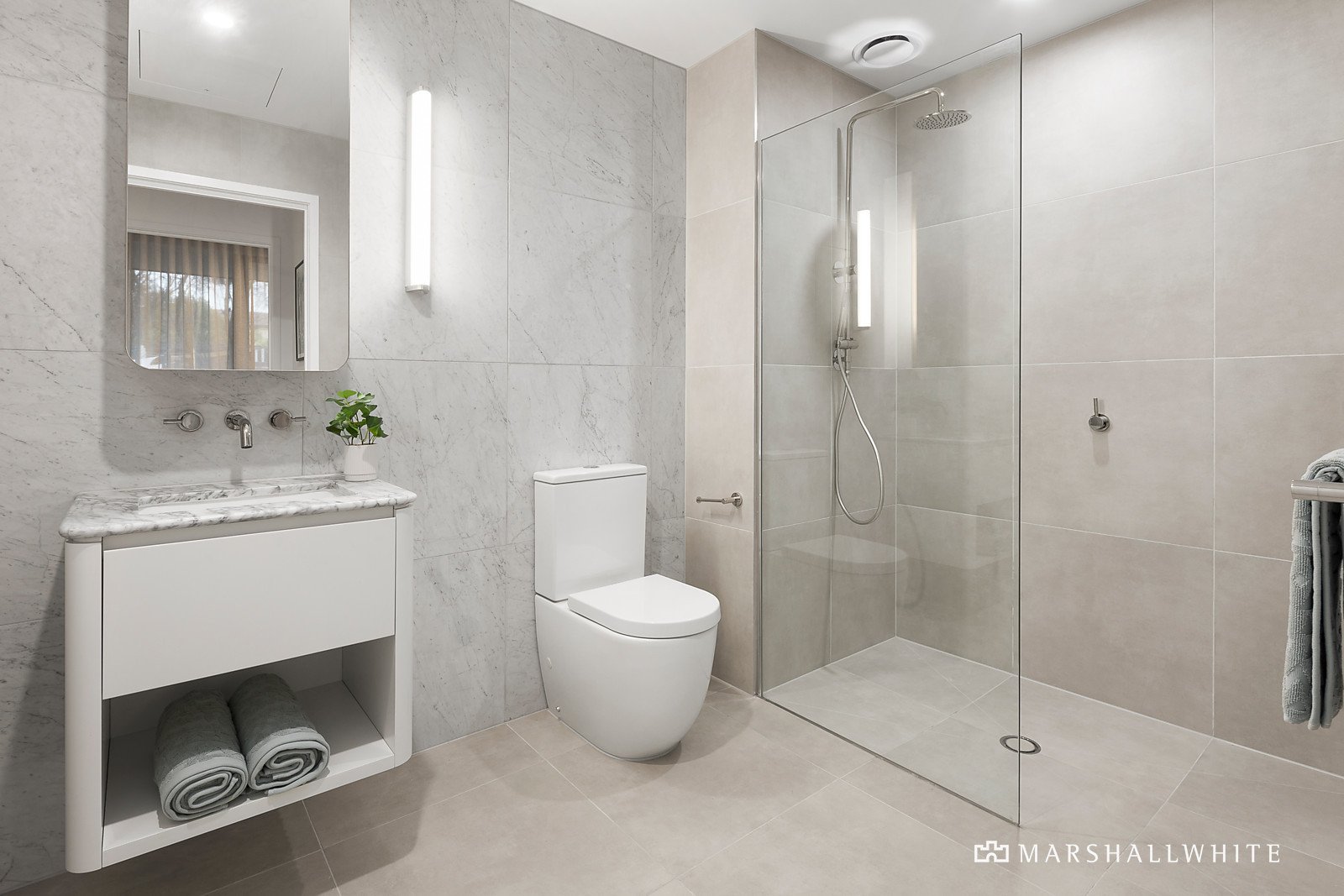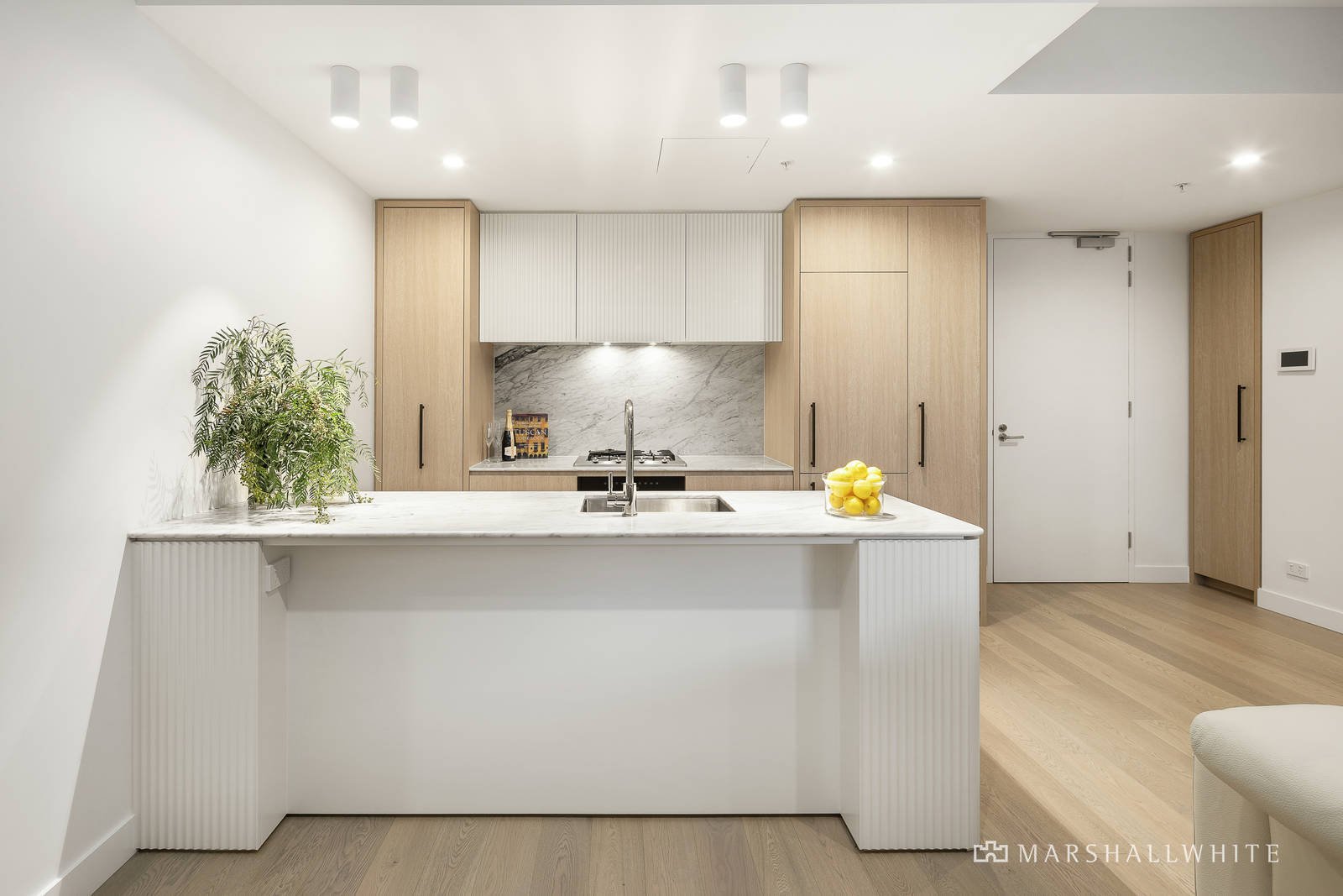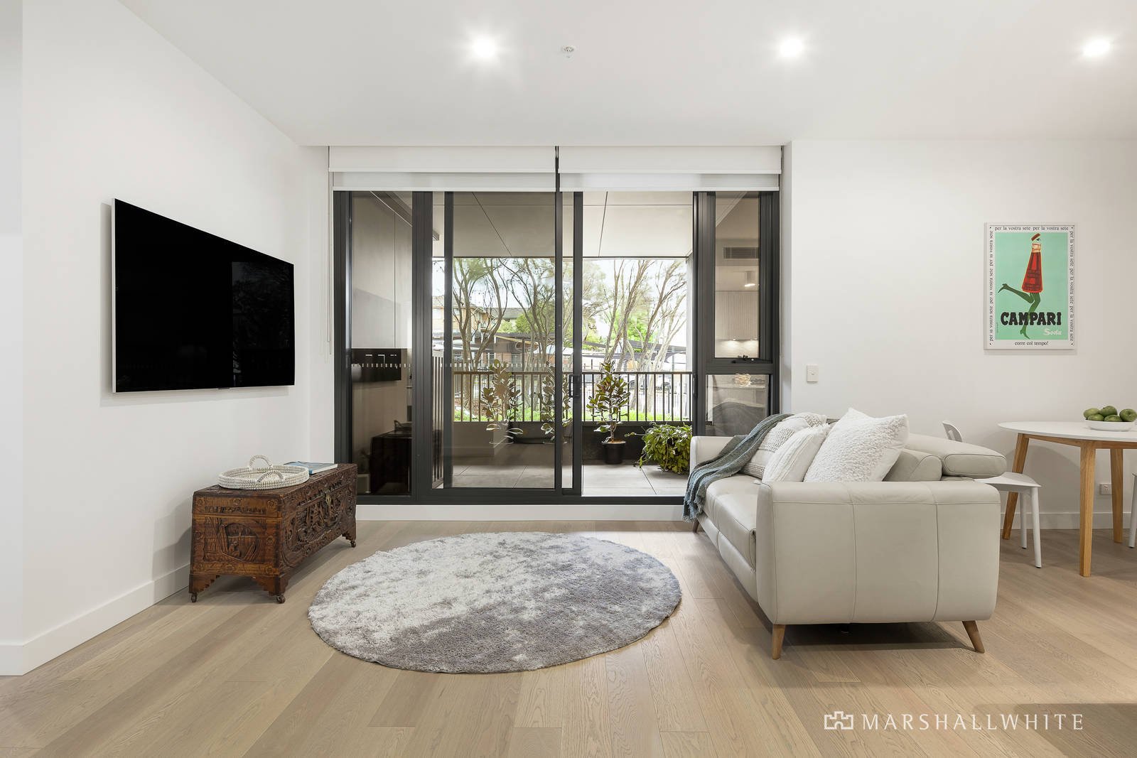 Brand new and utterly bespoke, is this generous elevated ground floor single level one bedroom apartment, ideally located along side of Gardiners Creek parkland, flawlessly appointed with a streamlined designer efficiency, and a 6.5-star energy rating. Featuring fully double-glazed windows, this whisper quiet apartment offers a light filled double bedroom with floor to ceiling built in robes, a fully tiled bathroom with laundry facilities, and study nook. A fully fitted Miele-equipped kitchen with natural stone benches and an integrated Liebherr refrigerator complements the open-plan dining / living space flowing out to a private balcony. Additional highlights of this meticulously planned residence include European Oak flooring, split system heating and air conditioning, secure video entry, CCTV surveillance, and secure undercover parking for one car, bike parking and EV charging station. Surrounded by wonderful local cafes and city commuting options - be it the trains from Glen Iris Station, trams along High Street, the M1 Freeway and even Gardiners Creek bike paths