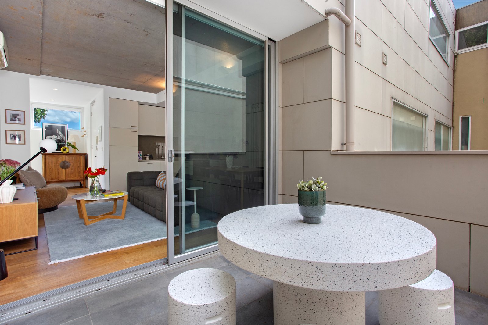 Smeg cooking is complemented by an integrated Bosch dishwasher and stone benches in a kitchen that will undoubtedly unload plenty of local takeaway, but will also give you the confidence to start your own gourmet cooking journey, while the terrace is generously scaled, bathed in morning sun and perfect for your first coffee of the day. Conveniently, the bathroom plays host to a large walk-in shower and a concealed laundry, plus there are mirrored robes in the bedroom, engineered Oak flooring to complement exposed concrete ceiling work and give a hint of industrial style, plus there is intercom entry and split system heating/air conditioning.