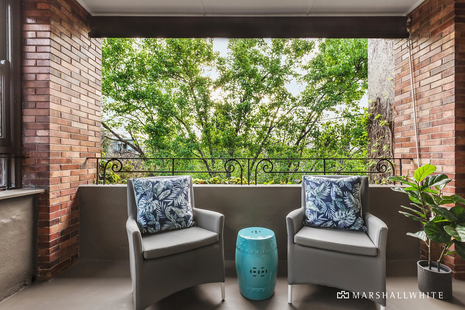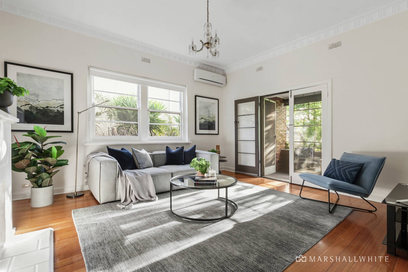 Timber floors flow through the wide hall and elegant, light-filled living room with a Deco fireplace and large west-facing undercover balcony offering city glimpses through the leafy foliage. The pristine original kitchen with dining area opens to the rear stairs and shared garden. The gorgeous main bedroom with built in robes is accompanied by a second double bedroom, a home office or third bedroom and classic 1930's bathroom with separate toilet.