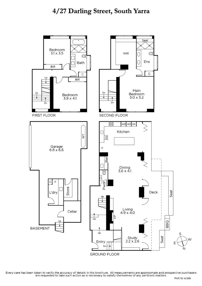 Setting a new benchmark for sophisticated urban living on 'The Block', this stunning four-level townhouse delivers sublime style with impeccable attention to detail. Distinctive design features throughout, presenting a truly enviable indoor/outdoor lifestyle. The Bosch kitchen with chic splashback, waterfall island and oversized sink opens to a butler's kitchen with Zip tap and bar fridge, whilst the light-filled dining/living area reveals an open fireplace and airy study zone. Expansive bi-fold doors extend to the spacious, private alfresco courtyard with abundant banquette seating, built-in BBQ and lush greenery. Two elegant bedrooms with built-in-robes and luxurious, mosaic-tiled bathroom with bathtub, double shower and double vanity occupy the level above, whilst the top level flaunts a sumptuous main bedroom offering a sizeable walk-in-robe/dressing room, impressive ensuite and dreamy rooftop outlook. A bespoke 400-bottle wine cellar, laundry, storage room and double garage with internal access complete the basement level. One of only four, securely positioned at the private and tranquil rear of the property, enjoy close proximity to Toorak Road and Chapel Street boutiques and dining, Prahran Market, public transport options, esteemed schools, parklands and easy access to the CBD. Additional features include reverse-cycle heating/cooling, hydronic heating in bathrooms, remote blackout blinds in bedrooms, statement lighting and ample storage, making this home the ultimate standard in luxury townhouse living.