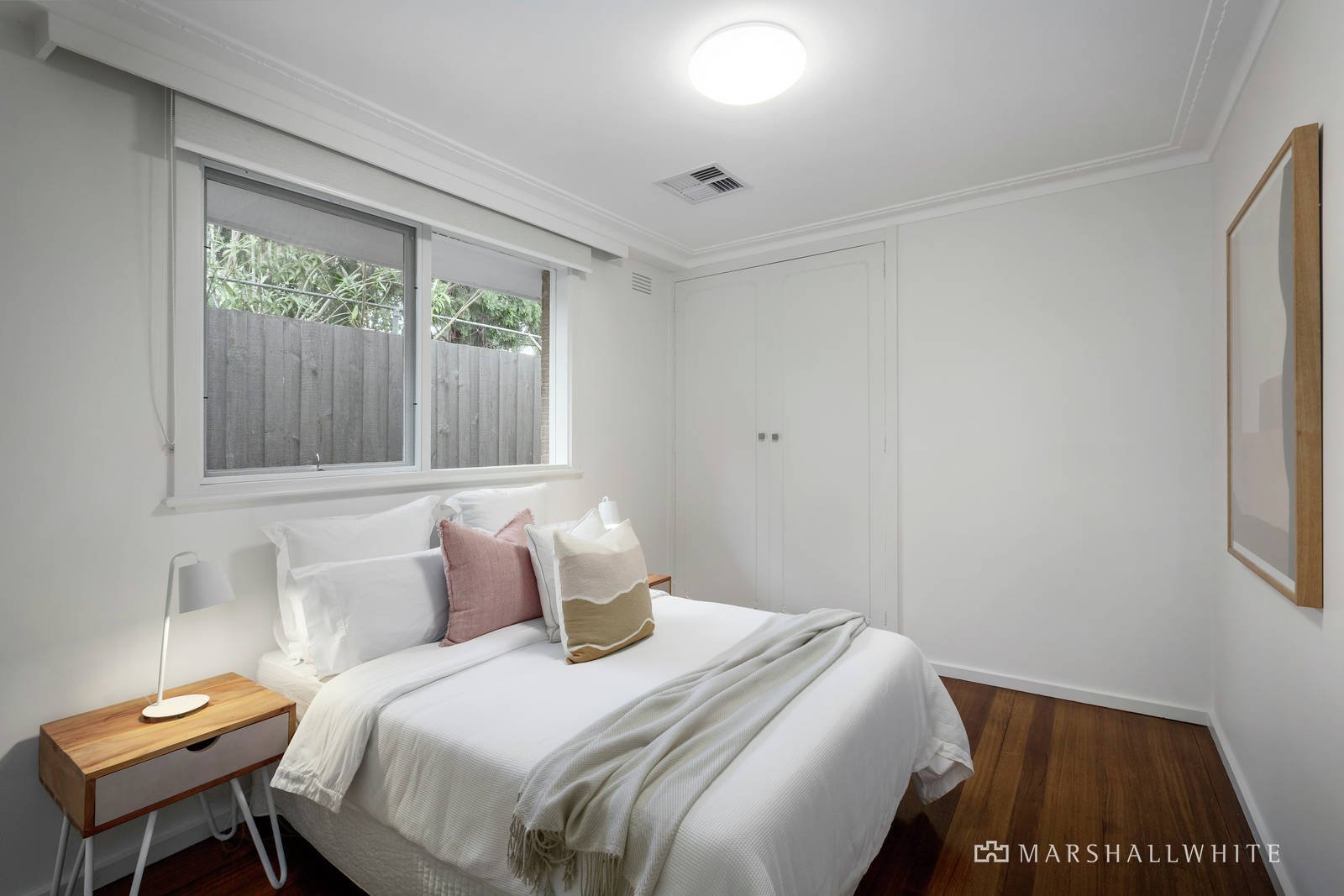 A remarkably peaceful and private home of fine alfresco style and sophistication, this spacious, light and airy, two bedroom villa has been tastefully renovated with an eye for detail, well-considered functionality and daily liveability. With polished hardwood floors, stone surfaces, loads of natural light and seamlessly integrated outdoor living, the home is delightfully set to the very rear of the block, without a care in the world. Revealing an effortless alfresco sensibility, a large Miele-equipped kitchen is complemented by stone benches and volumes of premium soft close cabinetry, as it overlooks dining / living where concertina doors open to a broad entertainers' deck. The bedrooms are each impressively proportioned with built-in robes - one also with a built-in desk / dresser - plus there is a fully-tiled designer bathroom, separate wc, powder room, large laundry, lock-up garage, central heating and air conditioning. This exclusive, Sackville Ward location is well served by trams along either Cotham Road or Burke Road, just moments from Kew Junction and Camberwell Junction, while offering easy access to a selection of elite Melbourne schools, most notably Genezzano College, Carey Grammar and Ruyton which are all within walking distance.