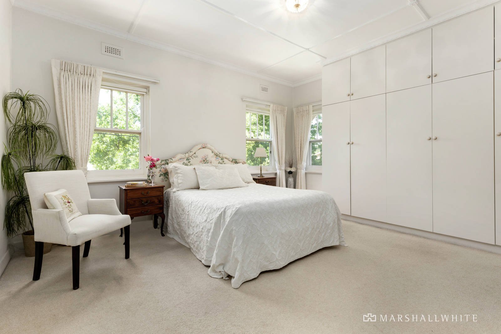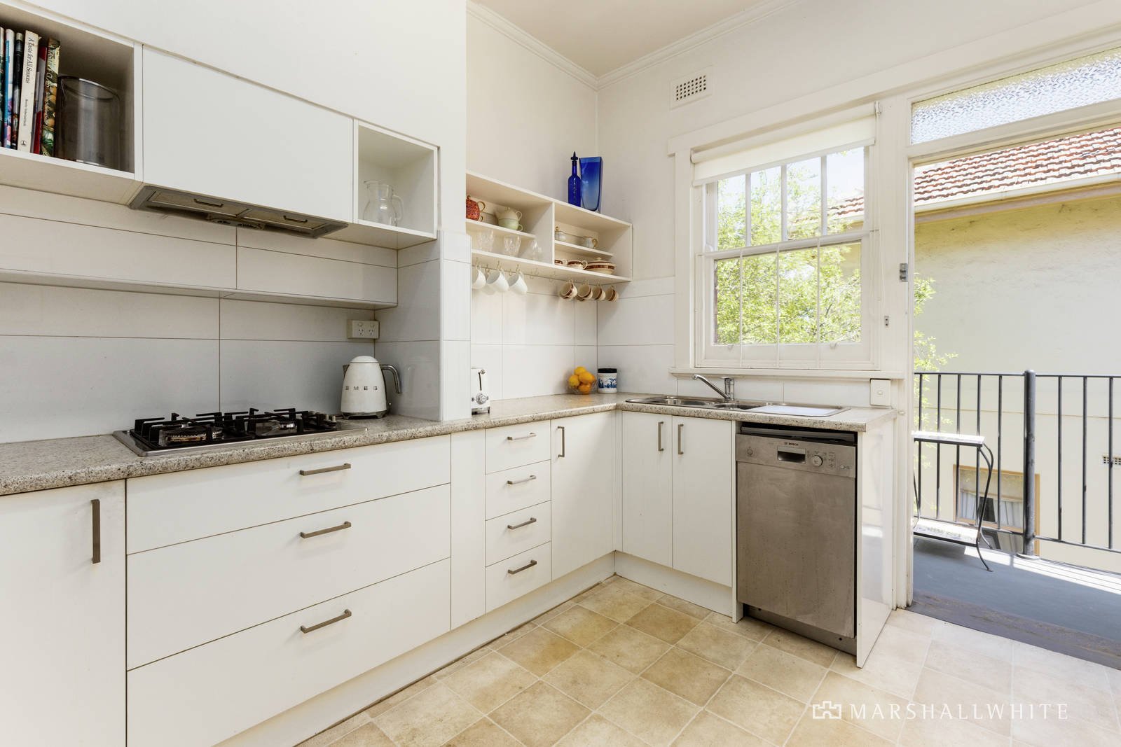 Graciously proportioned and bathed in natural light throughout, the beautifully presented "house-sized" dimensions originally designed by esteemed architect Lesley Reed are perfect to enjoy now while also offering scope to easily refurbish if desired. High ceilings and refined period character define the generous central hall, expansive living room with gas heater, a light-filled home office or sunroom saturated in northern light and an inviting dining room served by a separate well-appointed Bosch kitchen with balcony. The two spacious bedrooms with built in robes are accompanied by a bright bathroom with separate powder-room.