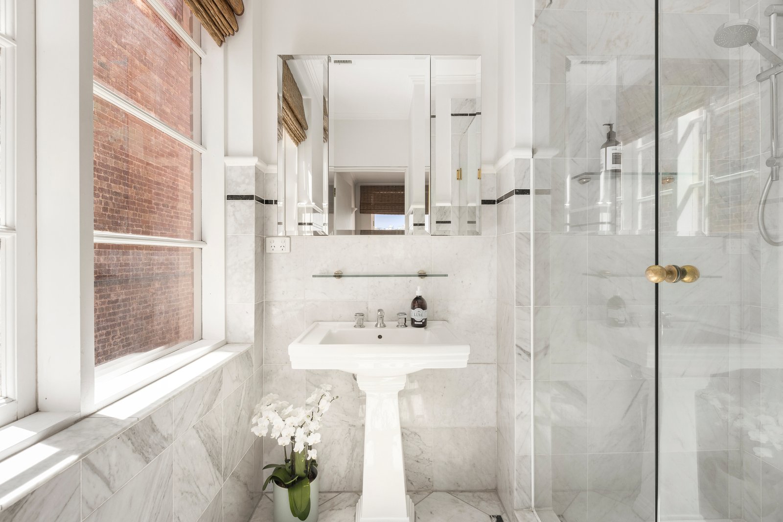 A particularly refined slice of Melbourne’s history, crafted by the renowned architect Arthur W Plaisted, this tastefully renovated, single bedroom apartment is a genuine Art Deco icon in one of Melbourne’s most exclusive positions, between the Botanic Gardens and Fawkner Park. One of only six in the tightly held, securely gated and immaculately maintained ‘Ahlwyn’ building, this first floor apartment also offers some twists of Art Nouveau and the rare prize of a sun-drenched rear terrace with views to the city towers. Bright and white with solid oak flooring and large Deco windows that facilitate an alluring connection to the leafy streetscape, the home is instantly uplifting, with an open-plan living area that is underpinned by a stylish kitchen combination of granite benches and stainless steel appliances, all connected to a divine undercover balcony. With the bedroom well zoned away from living, the apartment also features an oversized garage - with ten metre air rights – as well as an ensuite with walk-in shower and separate powder room, a concealed laundry, split system heating and air conditioning.