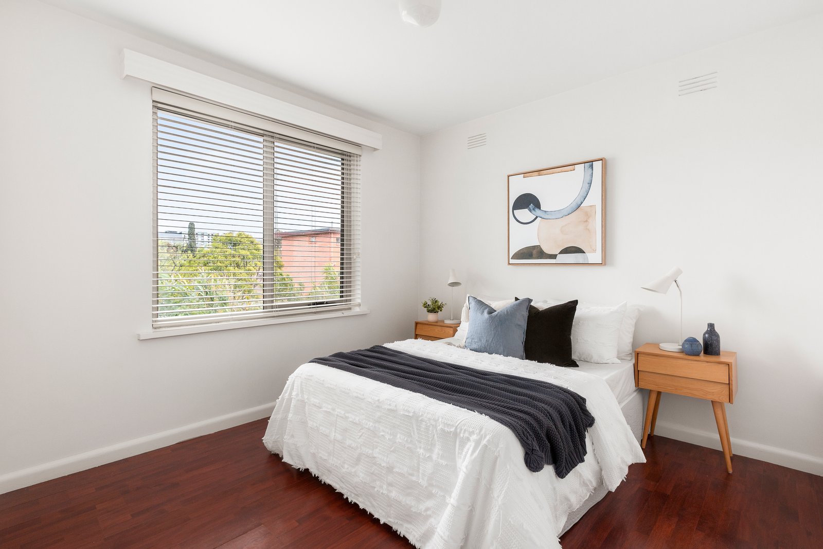 The interior presents in excellent condition with a light and bright, all white décor contrasted with dark engineered parquetry flooring and is ready for immediate occupancy on settlement. The accommodation features a spacious north facing living room, separate kitchen/meals equipped with a stainless-steel cooktop and a Whirlpool oven. Plus two bedrooms both with built-in robes and a bathroom and laundry combined. Other features include an air conditioner and gas wall heater (living room) and a car space on title.