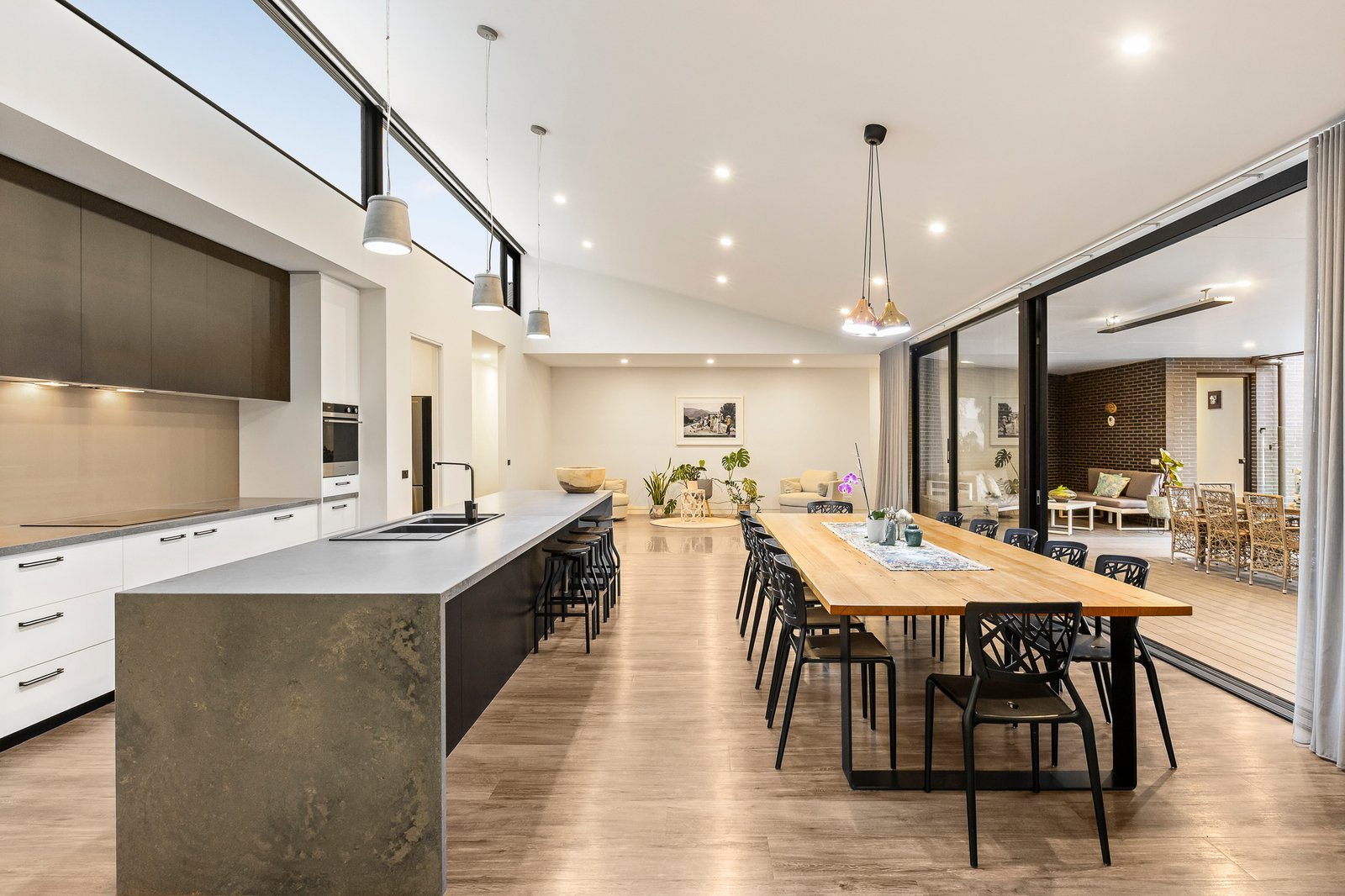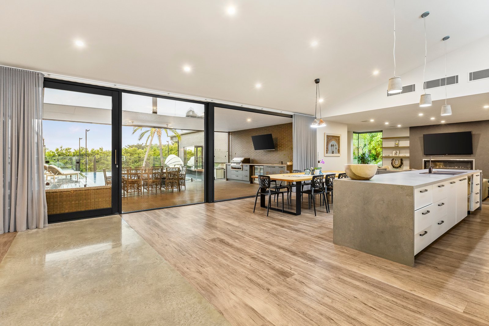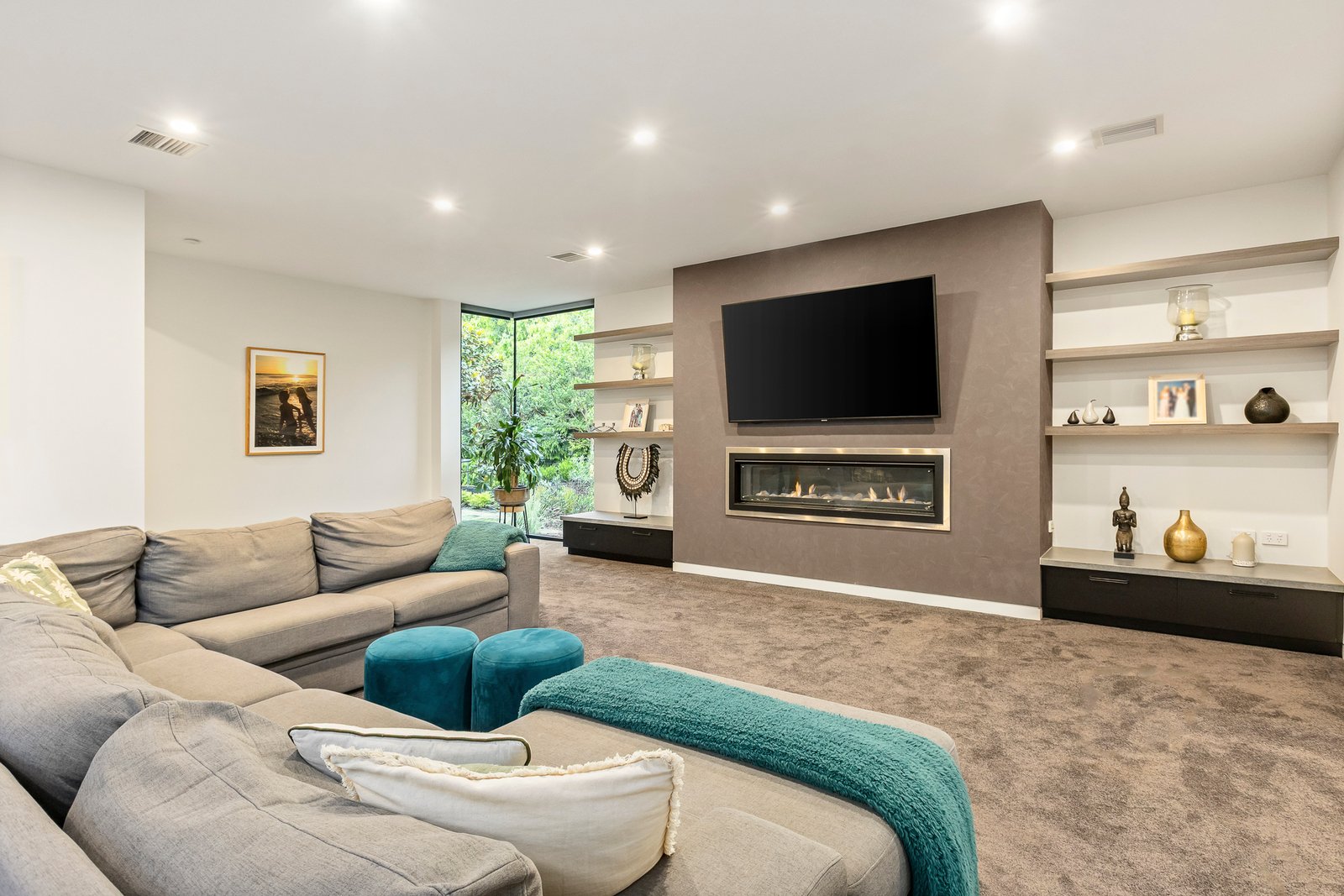 At the heart of the home, the chef’s kitchen is a statement in luxury, boasting concrete benchtops, twin ovens, a full butler’s pantry, and a Billi system delivering boiling, chilled, and sparkling water. Multiple living zones—including a theatre room, games room with bar, and an open-plan lounge with a gas fireplace—are designed for effortless entertaining.
