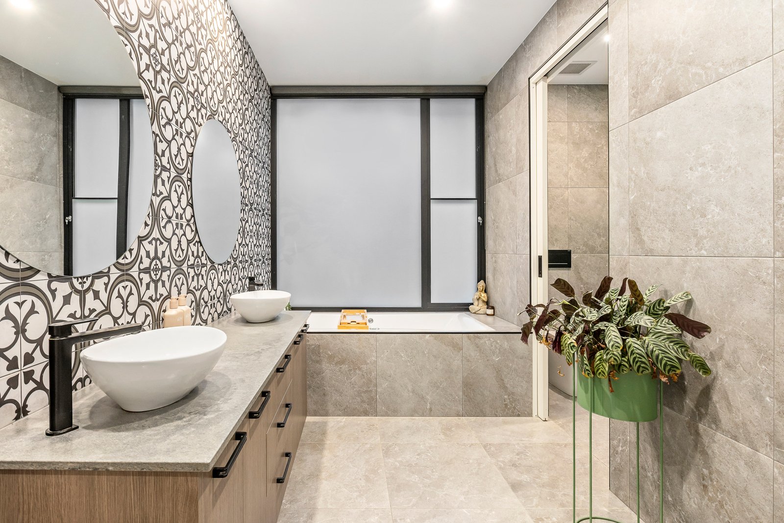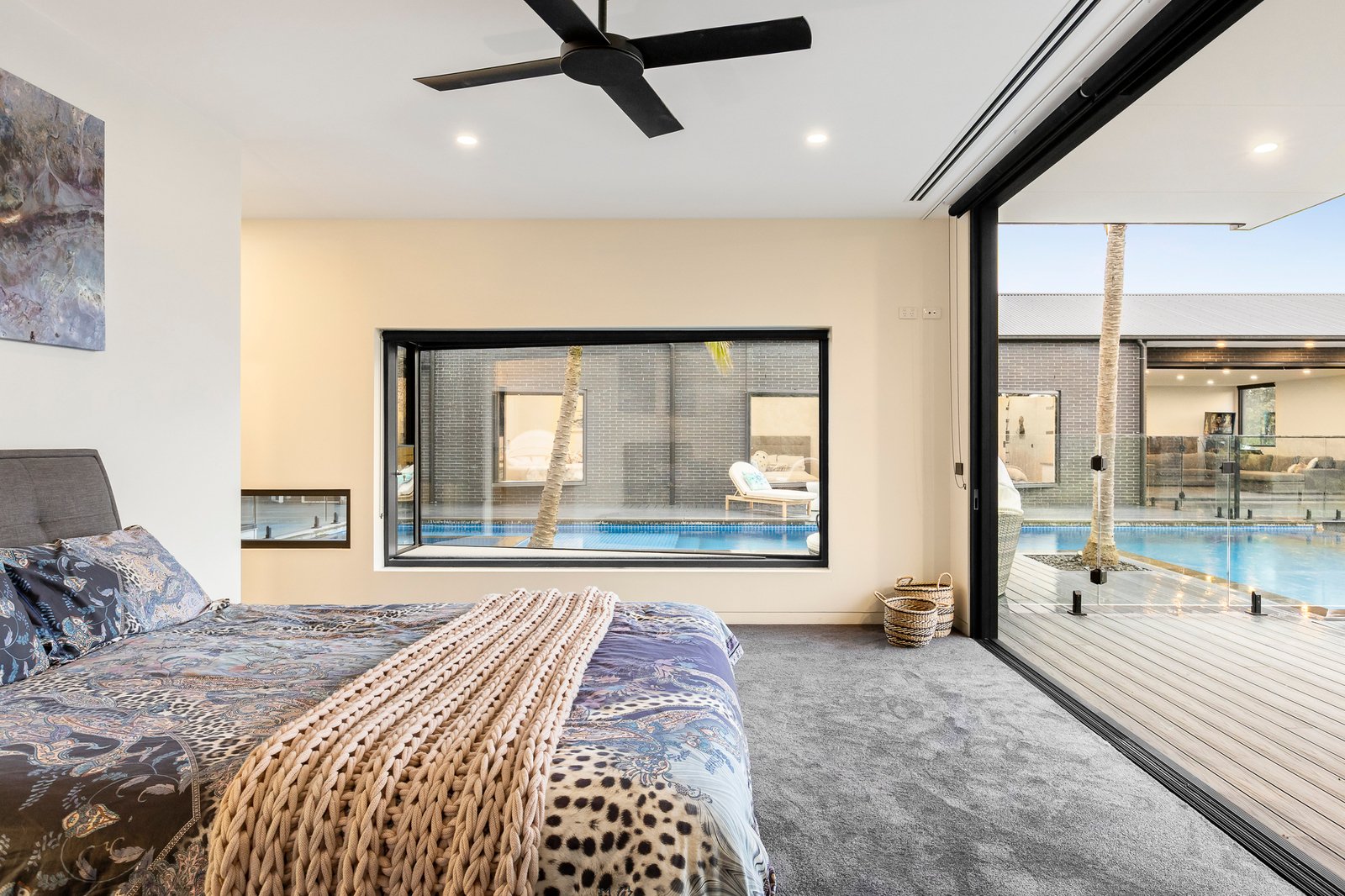 The grand master suite is a sanctuary of sophistication, featuring private deck access, a moody-toned ensuite, and a fully fitted walk-in robe.