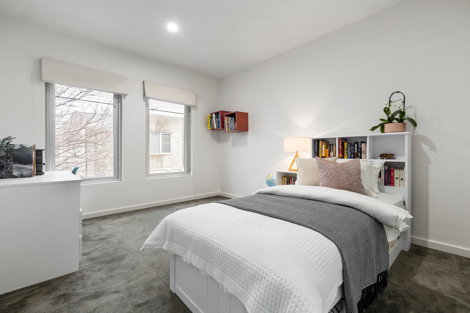 Instantly engaging and illuminated by vast banks of largely north-facing windows, the open-plan kitchen / dining / living is a celebration of light and proportion where a SMEG oven / cooktop is complemented by stone benches, hardwood floors and concertina doors that extend the space outdoors to a private and paved courtyard. Upstairs, the bedrooms are each impressively sized – two with huge amounts of built-in robe storage and the main bedroom with an ensuite – plus there is a fully-tiled family bathroom, a laundry, powder room downstairs and two secure basement parking spaces, as well as an oversized storage unit, secure video entry, central heating and air conditioning.