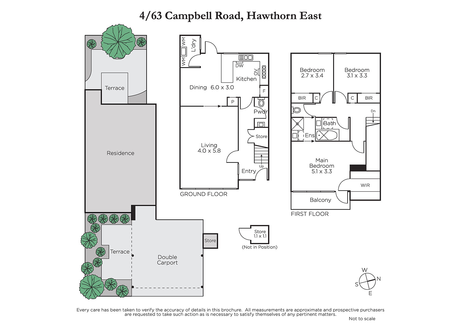 The home features contemporary timber floors, a spacious living room opening to a dining area and a well-appointed kitchen with Euro stainless steel appliances and dishwasher, powder room and laundry; plus access to a leafy rear courtyard garden - ideal for private outdoor dining or entertaining. Whilst upstairs there are three double bedrooms, main with WIR and ensuite plus a fully-tiled family bathroom. Other features include R/C air conditioners (4) on both levels and a front double carport. Land size: 161sqm approx.