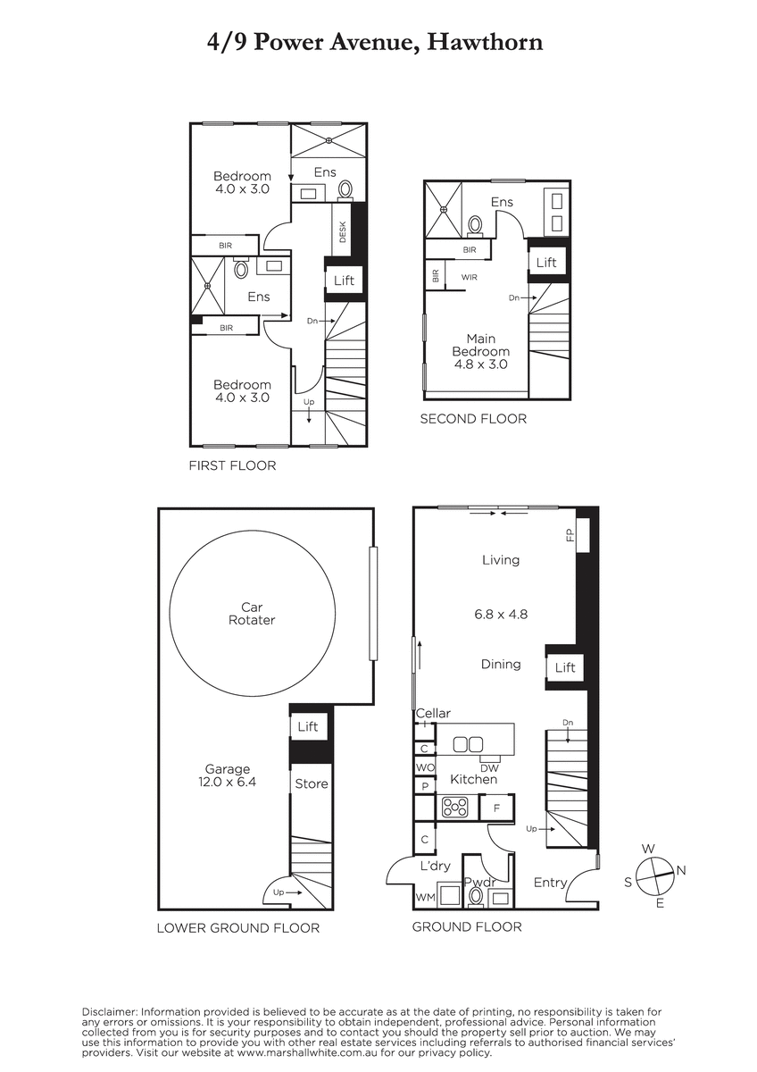 Highlighted by cutting edge designs and luxurious appointments including a fresh white and contrasting black and grey décor plus beautiful French Oak floors, stone surfaces and floor-toceiling windows. The interior features a generous living and dining area complete with a superbly appointed stone kitchen equipped with prestige Gaggenau stove, AEG integrated dishwasher and a Fisher & Paykel integrated fridge/freezer; plus a powder room and laundry. All flowing to a sun-drenched north-west terrace and courtyard garden - providing marvellous options for alfresco dining or entertaining. Level two has a study area and two double bedrooms with ensuites; whilst the main bedroom is located on level three with built-in robes and an ensuite. Other features of this superb home include video intercom, ducted heating and cooling, gasLFP (living), auto internal blinds and external sensored awning, fully-tiled bathrooms, rain water tank and private lift access to all floors from a secure basement double garage with a generous storage area and turntable.