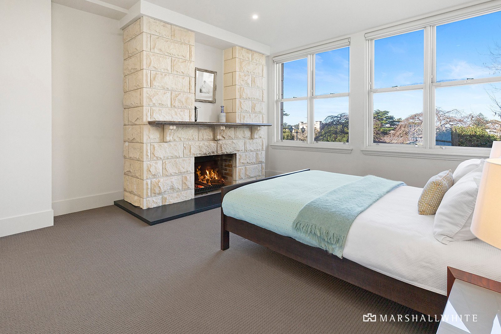 The culinary kitchen is superbly appointed with stone benchtops and a fleet of premium Miele appliances, while French doors open to a charming private courtyard terrace to dine outdoors with friends with your own private gate giving immediate access onto the greens of Portsea golf course. The oversized dimensions continue in the master suite, which boasts a walk-in robe, contemporary ensuite with step-in shower, tall sash windows framing the glorious setting and a second fireplace for toasty winter nights.