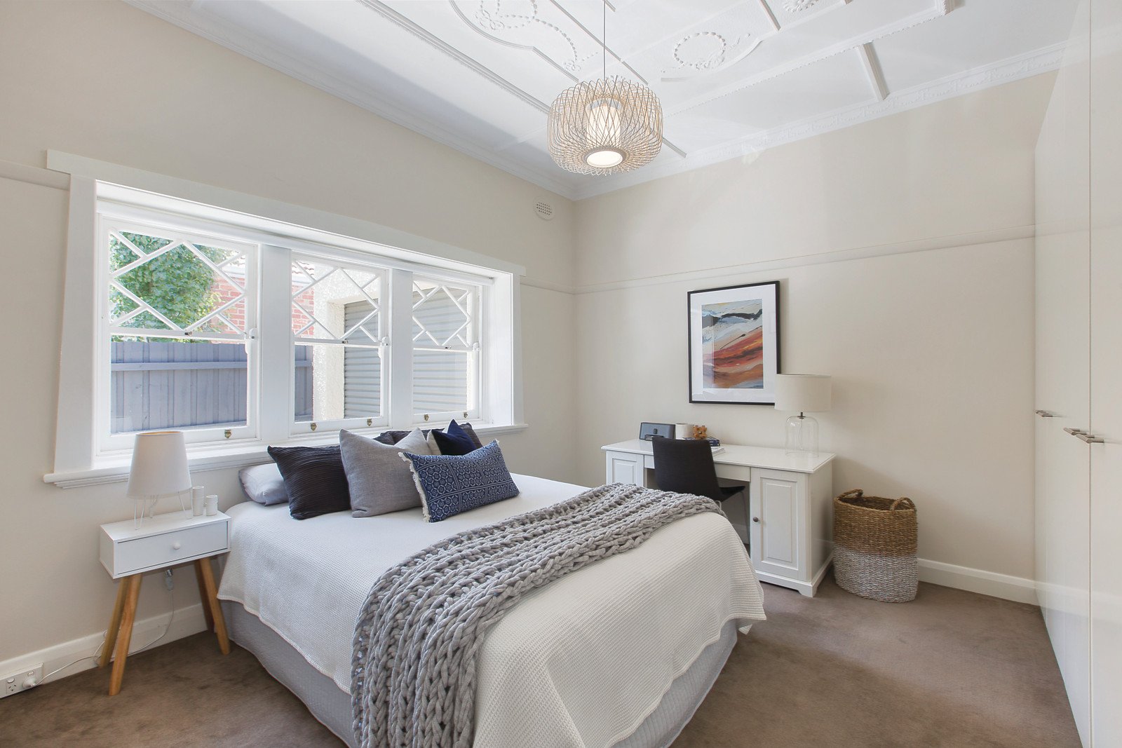 Comprising a total of four bedrooms, three with generous built in robes and study desks, the main bedroom is enhanced by a walk in wardrobe, ensuite and private veranda. This fine home also includes a second living space and a home office or study with an original fireplace. Comprehensive features include a generous family bathroom, powder room, well equipped laundry, ample storage, environmentally friendly solar panels and a single lock up garage.