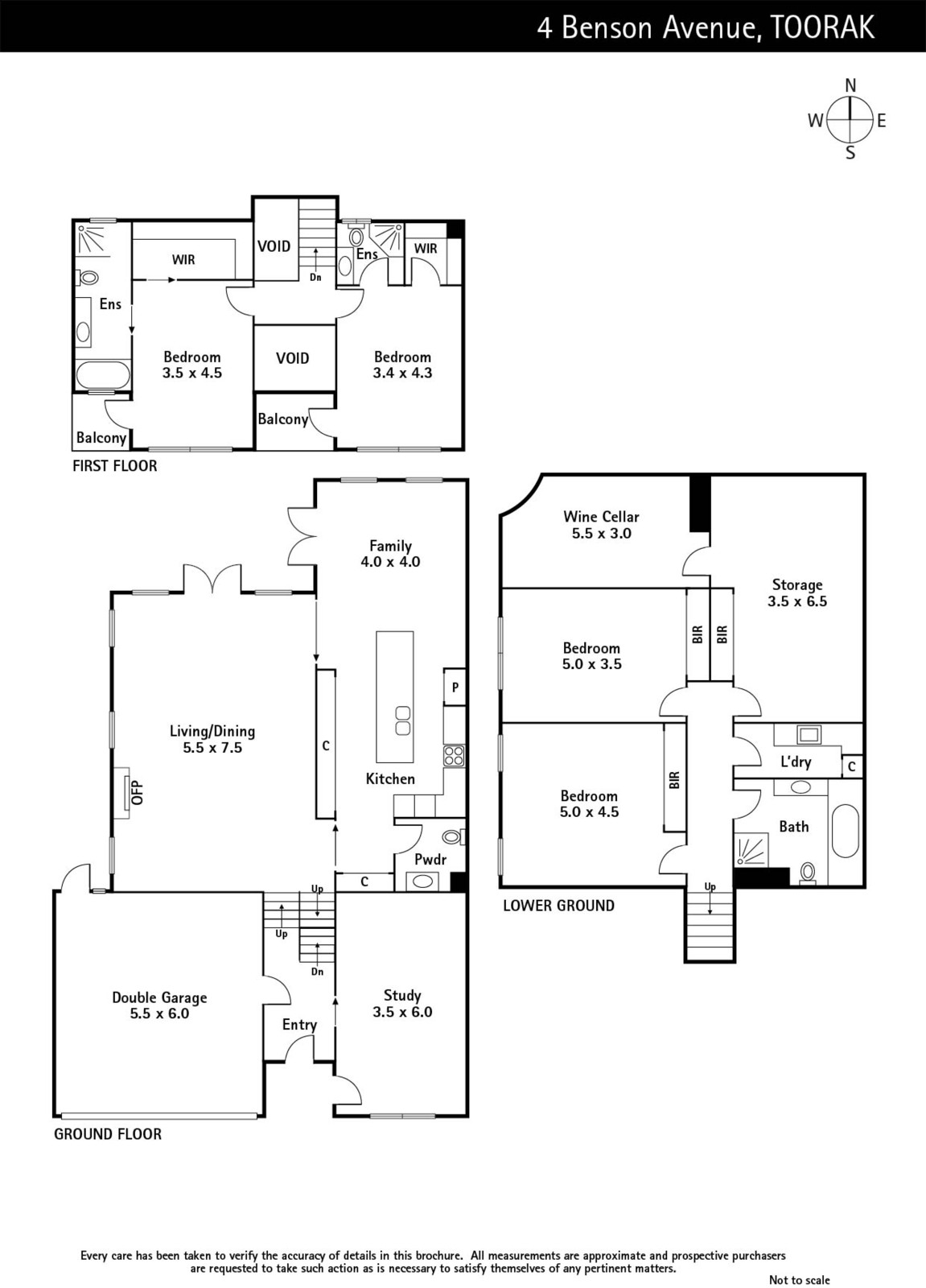 On the lower level, two enormous bedrooms with built in robes are serviced by a hotel style bathroom and laundry. A fitted wine-cellar and room sized storage facility complete this level. On the top level, the sophisticated main bedroom is fitted with an ingenious timber feature wall revealing a hidden walk-in robe, while Roger Seller signatures introduce the ensuite with a designer vanity and walk-in shower. The fourth bedroom or guest suite features a walk-in robe with imported luminescent wallpaper, an ensuite and balcony.