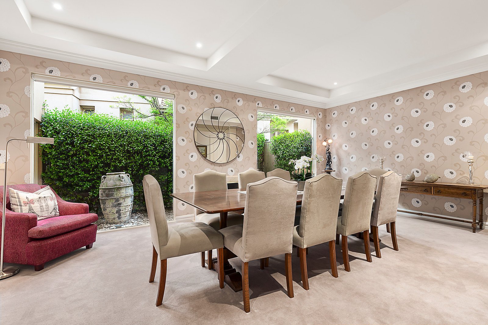 A tightly-held courtside address and a beautiful home deliver luxury Brighton living at its best. The timeless design merges formal and informal living areas, beautifully landscaped outdoor spaces, and a stylish interior you'll love coming home to. This is private and tranquil, with a north-facing family room and granite kitchen looking out to a courtyard garden bordered by hedged greenery and a water garden. Appreciate the spaciousness of a large lounge and dining room with big windows, coffered ceiling and a fireplace, perfect for family celebrations. Three large bedrooms include a main suite designed with a walk-in and built-in wardrobes, and a spa-bath ensuite with marble-topped vanity. The best finishes and features enhance every room with chevron parquetry floors, a curved carpeted staircase, custom-crafted cabinetry in the family room, and ducted heating and air conditioning. Appreciate the convenience of a large double garage with storage space, remote-control gates, security entry and alarm system. Easy walk to Brighton Beach station, you can be at the beach and schools in minutes, and families will love the low-traffic cul de sac.