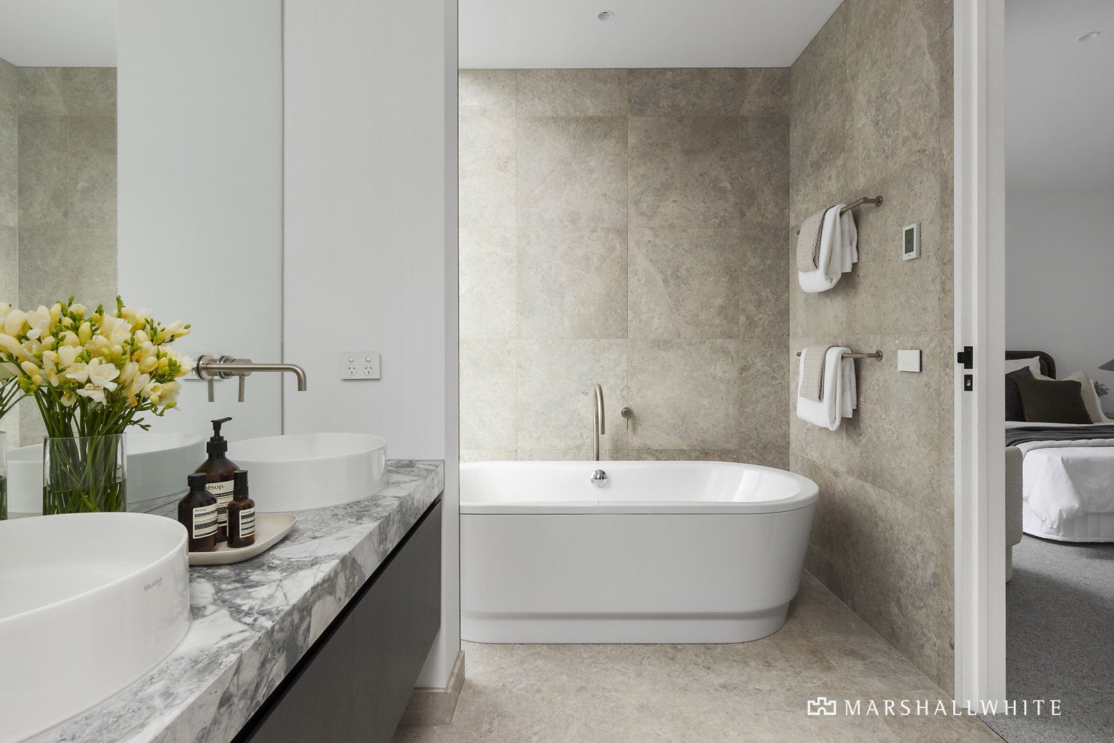 Encased in Tundra stone, the striking exterior profile creates an impactful first impression matched inside by the soaring ceilings, limed oak floors and customised joinery. A full height door reveals an inviting entrance hall and light-filled home office/second living. The exceptionally spacious open plan living and dining room features a gas log fire and premium kitchen boasting marble benches, Miele appliances, integrated Miele fridge/freezer and a butler's pantry. Full height glass sliders open out to a private northeast facing landscaped Tundra paved courtyard with a picturesque solar heated pool. Both a lift and stairs lead up to the gorgeous main bedroom with lavish marble en suite, walk in robe and balcony, two additional bedrooms with robes and a stylish bathroom. On the basement level, there is a versatile theatre/gym with bathroom, a fitted wine cellar, storeroom and double garage with workshop area.