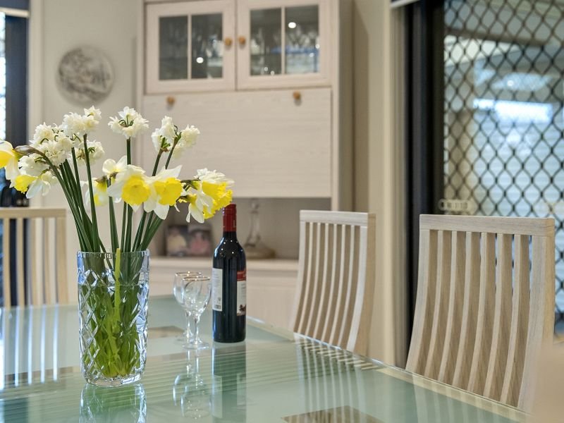 Some of the many extra appointments include ducted heating & evaporative cooling, ducted vacuuming, double glazed windows with remote-controlled shutters to the master, vester weave blinds to all windows, 9ft ceilings, motorised blinds to the alfresco area, 7 solar panels with inverter capacity for 24 panels, 5000l rainwater tank with pump, 5 x external power points, in-line irrigation system, walk-in linen press & laundry, 8 x 7ft shed on concrete floor and a double garage with rear roller doors.