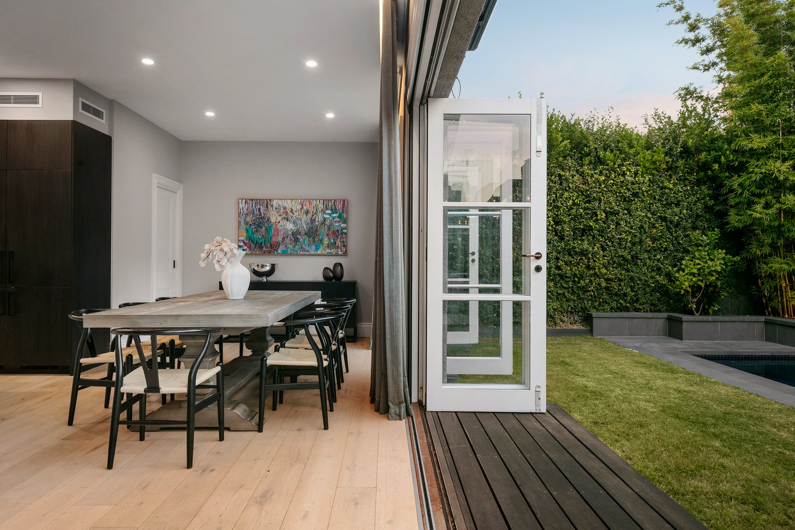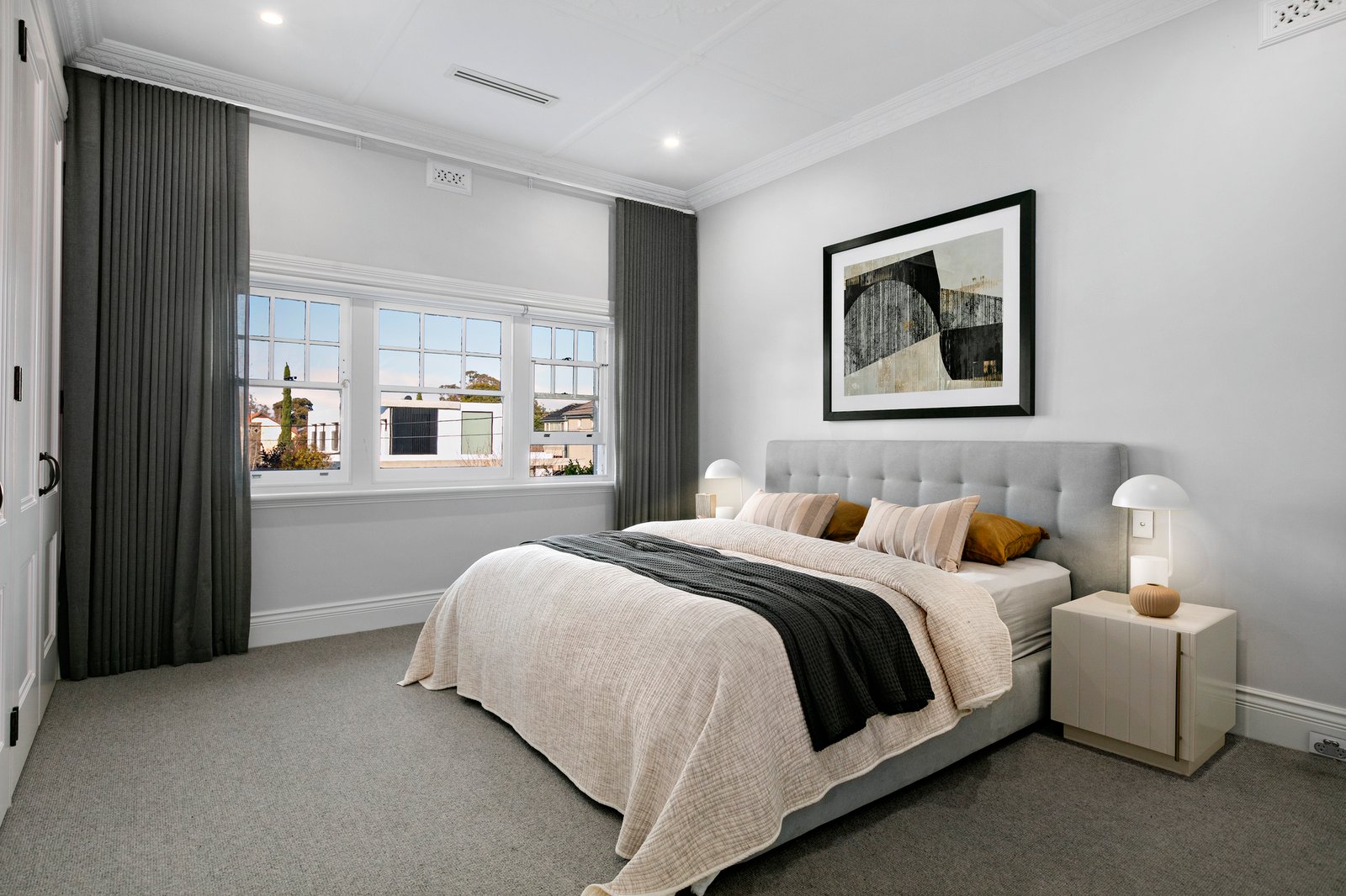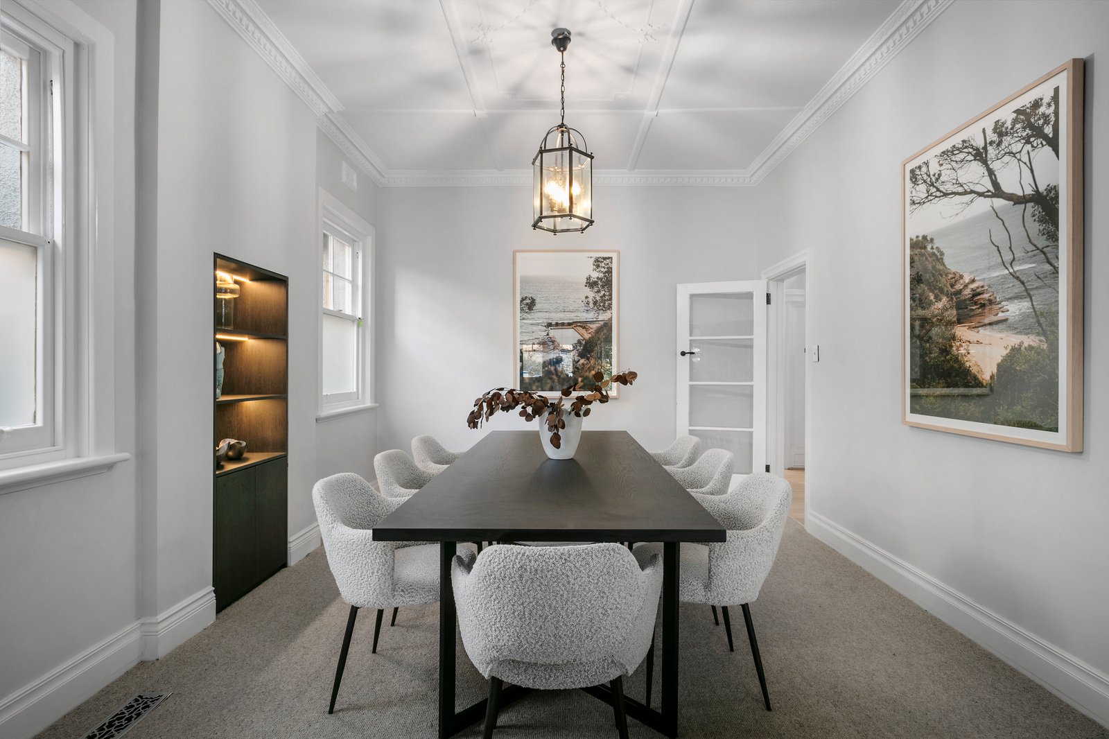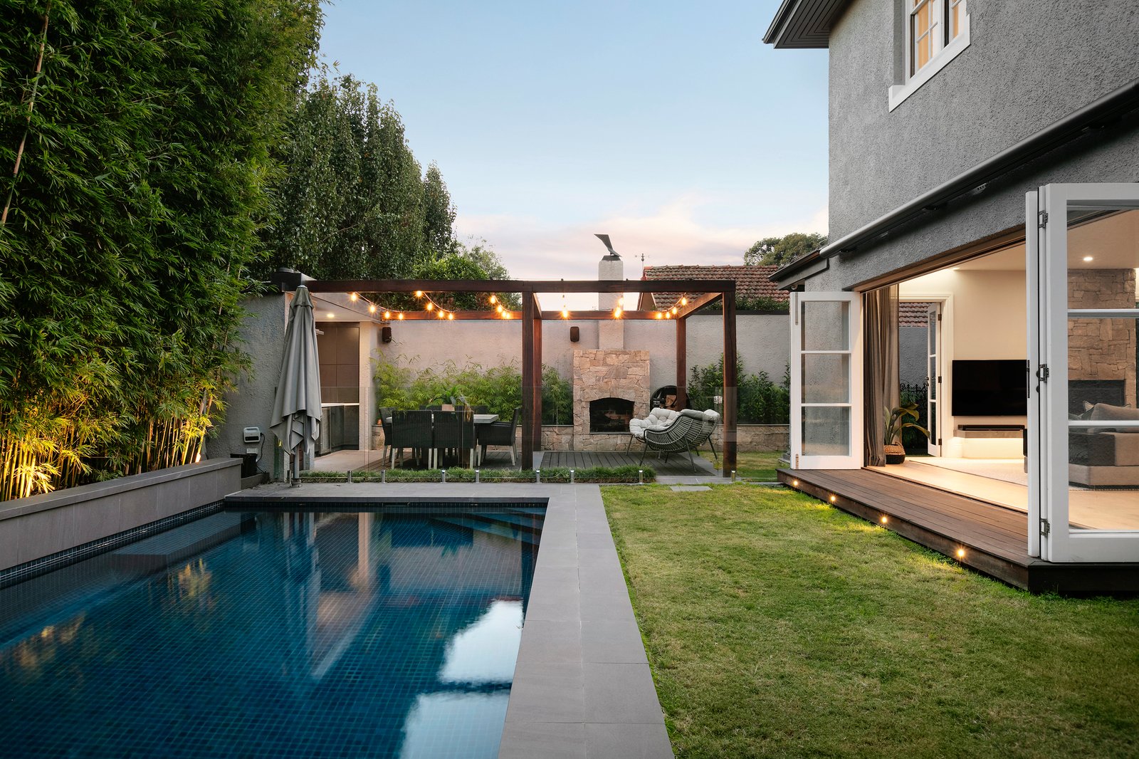 In the company of some of Brighton’s finest homes, this exquisite example of Spanish Mission architecture has been impeccably renovated down to the finest detail including the Italian imported door furniture and extensive smart home features including electric blinds, heating and cooling, pool, security and intercom. Simply sublime, making the most of graceful light-filled interiors and generous period proportions, this serene haven has experienced a complete transformation to deliver every contemporary comfort with the backdrop of a sparkling pool and garden. Imported Spanish-inspired tiles create the refined introduction to a series of sun-drenched living spaces, punctuated by soaring ornate ceilings, timber floors, trademark arches and stylish bespoke cabinetry.