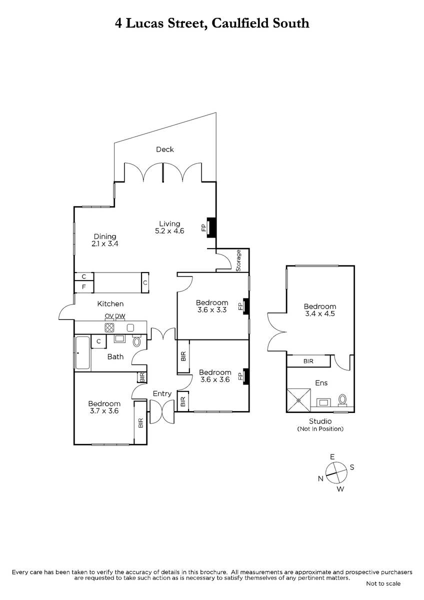 A fully renovated Californian bungalow beauty is perfect for lifestyle living in the Gardenvale Primary school zone. Architects Studio Bright have reinvented this solid-brick home to create living and dining spaces opening onto a deck and leafy garden, four bedrooms, and a design-driven interior. Families will love the single-level convenience and self-contained studio with a bedroom, ensuite, and built-in desk for working from home. It's the ultimate flexible space for a teenage retreat, guest accommodation, an office or extra living zone. Banquette seating, bifold windows and a Louis Poulsen pendant light feature in the dining zone, and the family room is inviting with a Heatmaster fireplace and garden views. The Smeg kitchen has hardwearing Artedomus Maximum porcelain benchtops and bespoke cabinetry, the bathroom reveals a tranquil vibe with garden views and Japanese tiles, and the ensuite's vertical tiles and walk-in shower match style with practicality. Open the family room bifold doors and enjoy the landscaped garden, where you'll find five varieties of fruit trees, meandering paths, plenty of deck space, and bluestone pavers. Excellent fit out includes louvred windows, ducted reverse-cycle heating and air conditioning, surface-mounted downlights, and solid timber floors. Lucas Street is a leafy enclave with tree canopies providing a country-lane vibe. It's an easy walk to Gardenvale train station, Martin Street's cafes and Hawthorn Road's trams, and Landcox Park is nearby.