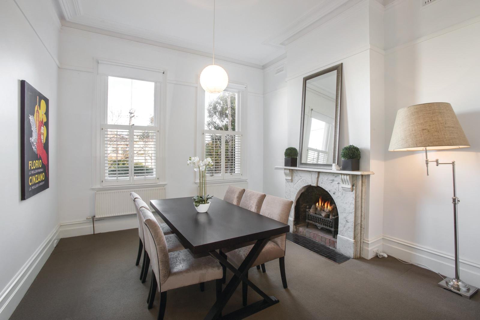 All the hallmarks of Victorian architecture are beautifully displayed through the wide entrance hall, elegant sitting room with magnificent open fireplace and light-filled formal dining boasting a marble fireplace. A sunny office and bright and spacious kitchen with dining area open to the northeast facing private garden and freestanding studio with mezzanine level, ideal as a teenage retreat. The generous main bedroom commanding wonderful city views is complemented by two further spacious bedrooms, a study or 4th bedroom and two bathrooms. Providing the perfect foundations for a luxurious family domain, this majestic home also includes hydronic heating and double garage via wide right of way. Land: 460sqm approx.