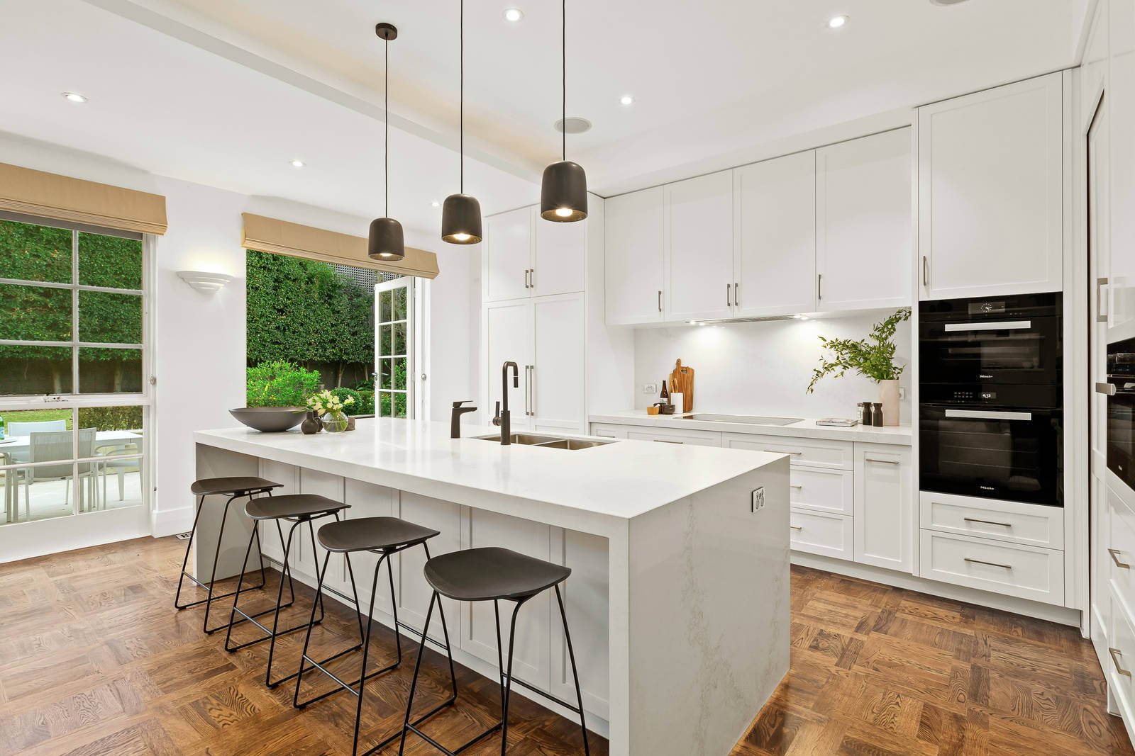 Both the exterior colours and internal finishes which include oak parquetry floors, decorative ceilings, plantation shutters and customised joinery reflect evocative Hampton's style. Northern light bathes the very wide reception hall, elegant sitting room with open fire, inviting dining room also with an open fire and a fabulous media/rumpus room which opens to a large north-facing balcony, perfect for enjoying the sunsets. The generous living room and stunning kitchen, appointed with stone benches, 2 pantries and integrated Miele appliances including a steam/combi oven, induction cooktop and fridge/freezer extend out through French doors to the private hedged garden with in ground trampoline and entertaining terrace. Superb family accommodation comprises a glorious main bedroom with bay window, built in robe and designer en suite, three additional bedrooms with built in robes and a stylish bathroom.