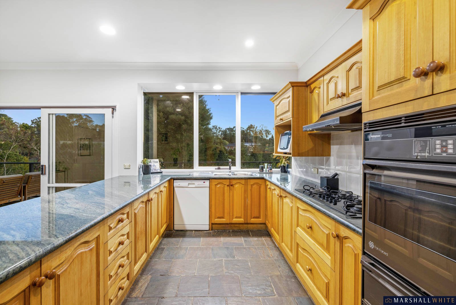 Walk through to the kitchen, second dining and living space; the large timber kitchen will cater easily for big families with excellent cupboard space, two pantries, wall oven and gas cooking.