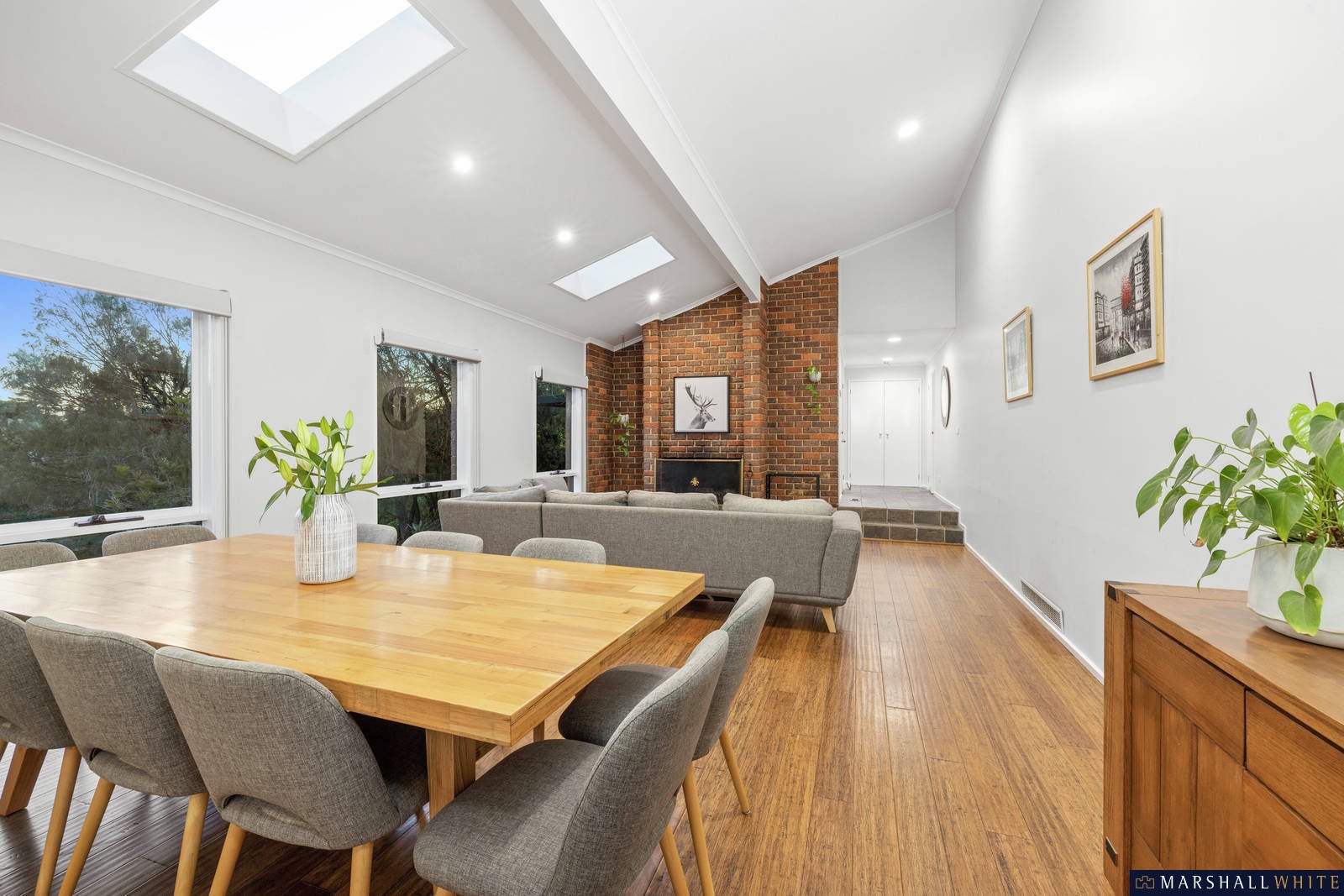 There are two huge open plan living areas that enable the family to both spread out and come together. The first is full of character thanks to the raked ceilings, split levels and feature brick wall with fireplace. With room for a large dining table as well as couches, this is a wonderful spot for adults to entertain and retreat.