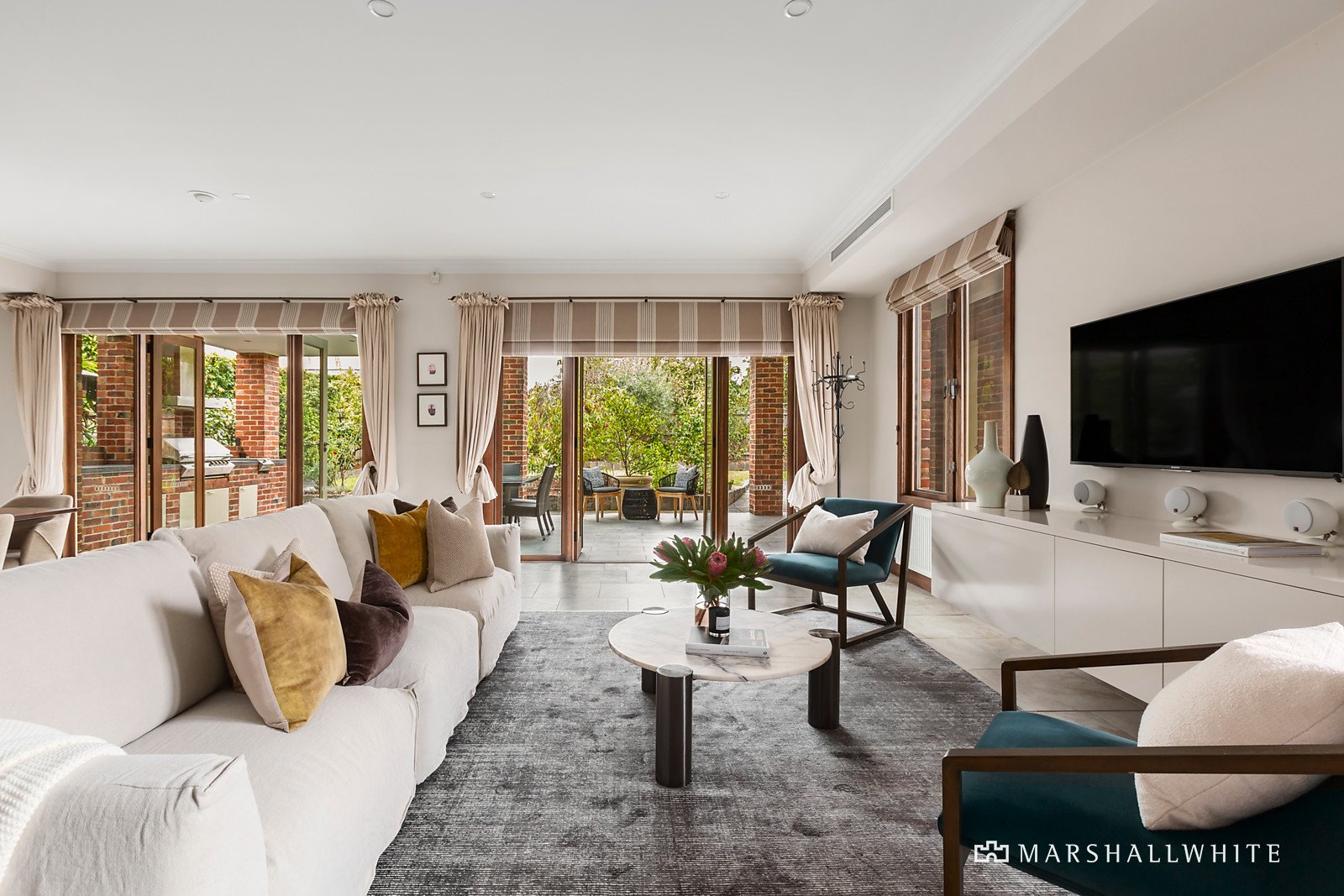The deceptively spacious interior over two levels features a wide entrance hall with polished timber floors flowing to a downstairs guest bedroom with WIR and ensuite, a formal sitting room with adjoining dining, study, powder room and laundry. Plus an expansive family domain incorporating a superbly appointed timber and Italian marble kitchen equipped with a walk-in-pantry, Liebherr integrated fridge/freezer, Asko integrated dishwasher and Ilve gourmet stove. Opening to a covered outdoor dining and entertaining area with gas mains barbeque. Complemented by three upstairs bedrooms, one with a WIR, main with a pristine ensuite and dressing room, a family bathroom, study area and City skyline glimpses. Other comprehensive appointments include video intercom, alarm (house & garage), hydronic heating, OFP, zoned R/C ducted cooling, ducted vacuum, surround sound, Cat 5e cabling, exceptional storage including attic and a large cellar, garden lighting, 20,000ltr underground tank, garden shed, auto & security gates plus a wide remote double garage with workshop, kitchenette and external WC.