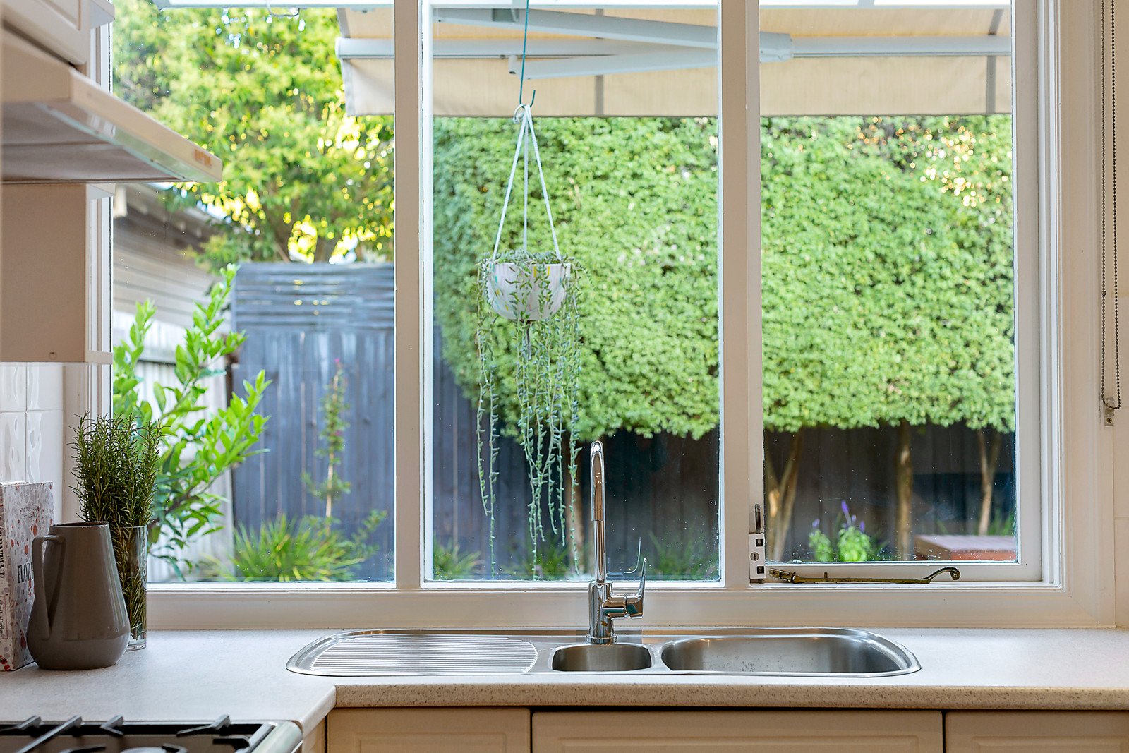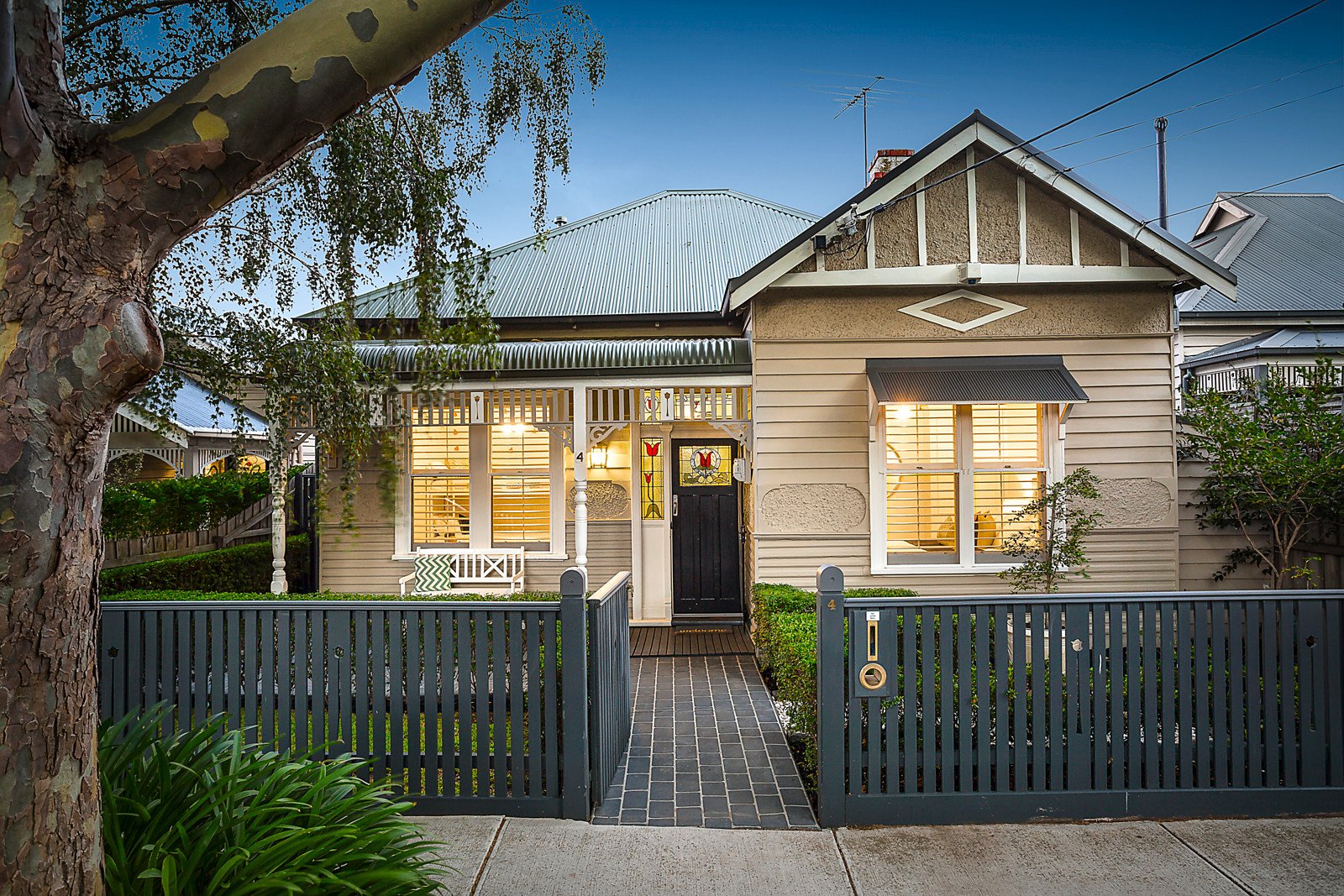 Behind the classically appealing exterior, the wide entrance hall featuring high ceilings and Baltic pine floors leads through to the inviting living room with open fireplace. The bright well appointed kitchen and a sun-drenched dining area open out to a good sized private hedged northeast garden, perfect for al fresco dining beneath a remote sun-awning. Two gorgeous double bedrooms with built in robes and a third bedroom with built in robe are accompanied by a stylish bathroom with freestanding bath and separate toilet.