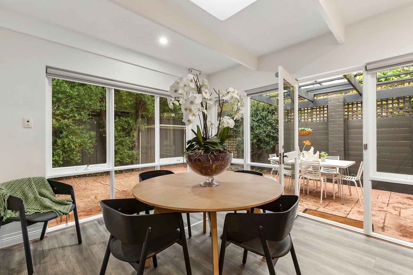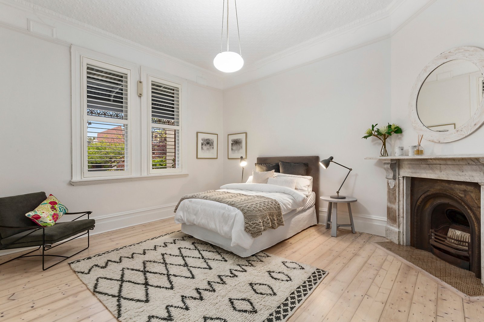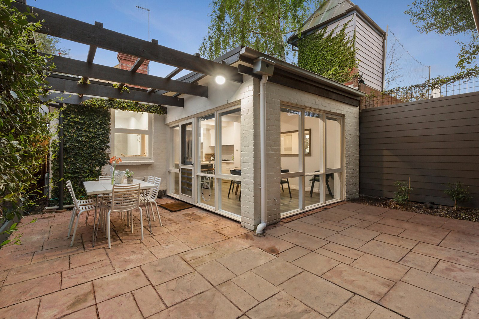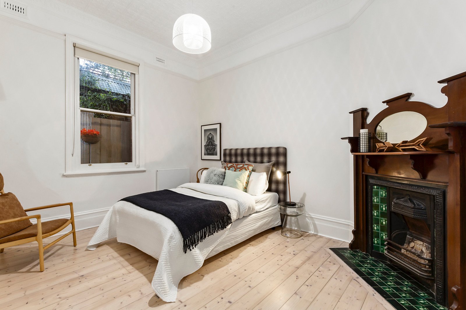 Behind the tessellated veranda, limed Baltic pine floors complement glorious, pressed metal ceilings in the L-shaped entrance hall and gorgeous main bedroom with an open fire. There are two additional bedrooms with fireplace and robes and a stylish bathroom with laundry. The living room also features limed Baltic pine floors and a fireplace is adjacent to the sleek gourmet kitchen appointed with Bosch appliances and stone benches. An inviting dining area opening to the private paved northwest facing garden is surrounded by greenery.