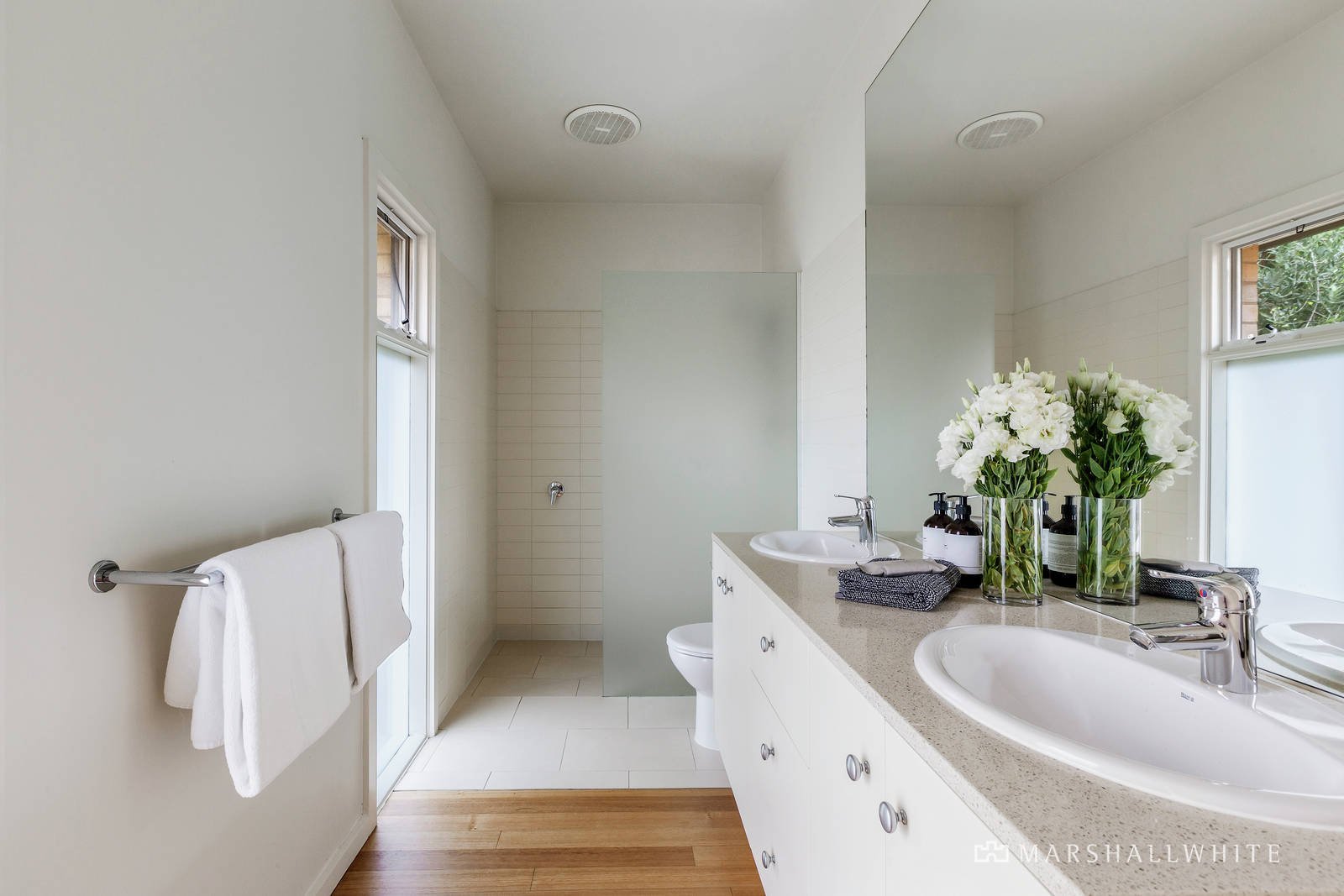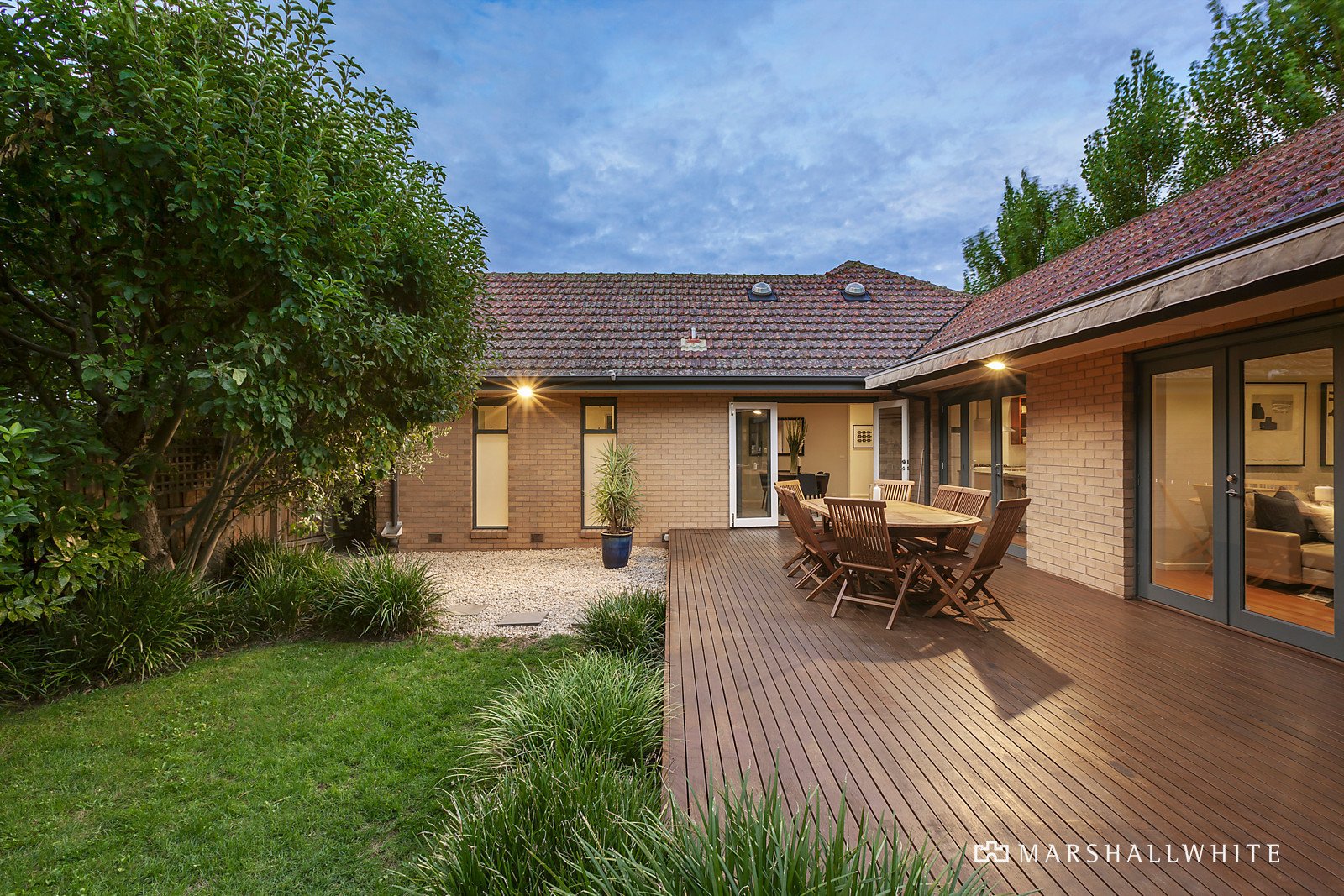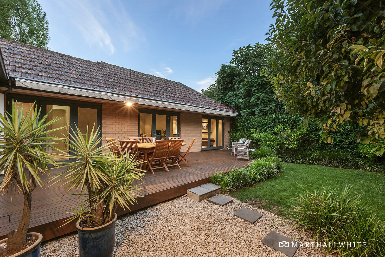 The inviting interior is introduced by a leafy garden with lines of standard roses and the home surrounded by hedge-lined gardens providing privacy for family enjoyment and outdoor entertaining on a wide rear deck. Polished Tasmanian Oak floors flow to four good-sized bedrooms all with BIRs including a main with ensuite and opening through French doors to a northern terrace - a perfect spot for coffee and the morning papers. At centre of the home is a pristine family bathroom and sleek CaesarStone kitchen equipped with Bosch & Blanco stainless steel appliances with an adjacent laundry and dining flowing to two separate living rooms, the deck and the garden. Other features of this delightful home include alarm, intercom, ducted heating & cooling, Heat 'N Glo FP (living), electric awning over the deck, irrigation system, two 5,000ltr under house water bladders, a remote garage with storage and tandem off-street parking. Land size: 617sqm approx.