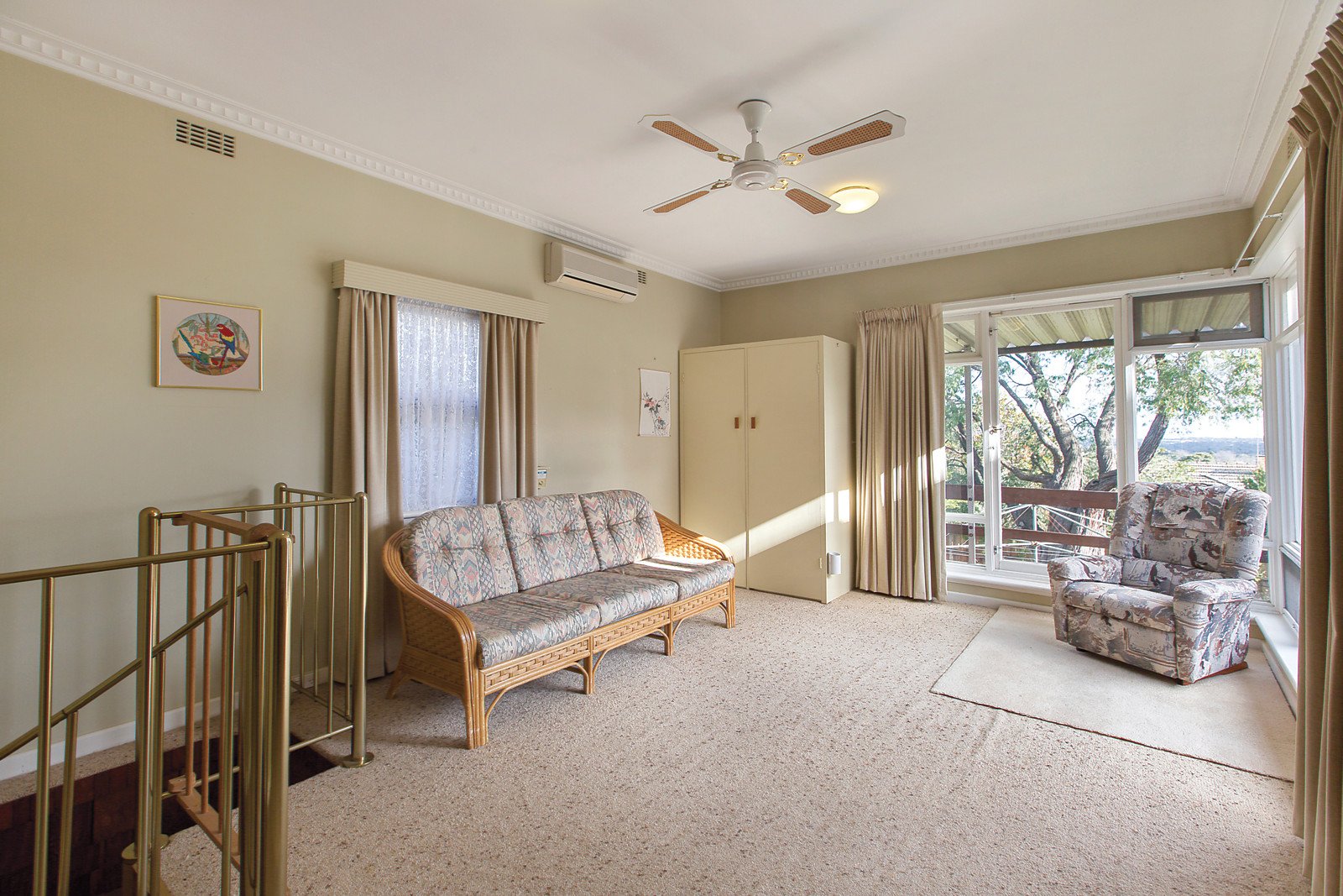 A much loved family home, the impressively maintained interior features wonderful period charm through the entrance hall, generous sitting room with an open fireplace, separate dining room and the pristine kitchen. A north facing light-filled living room with balcony commands panoramic views to the city skyline. Two spacious double bedrooms with built in robes share a bright bathroom with separate toilet. A spiral staircase leads down to a rumpus room/3rd bedroom that opens to the deep private east west garden.