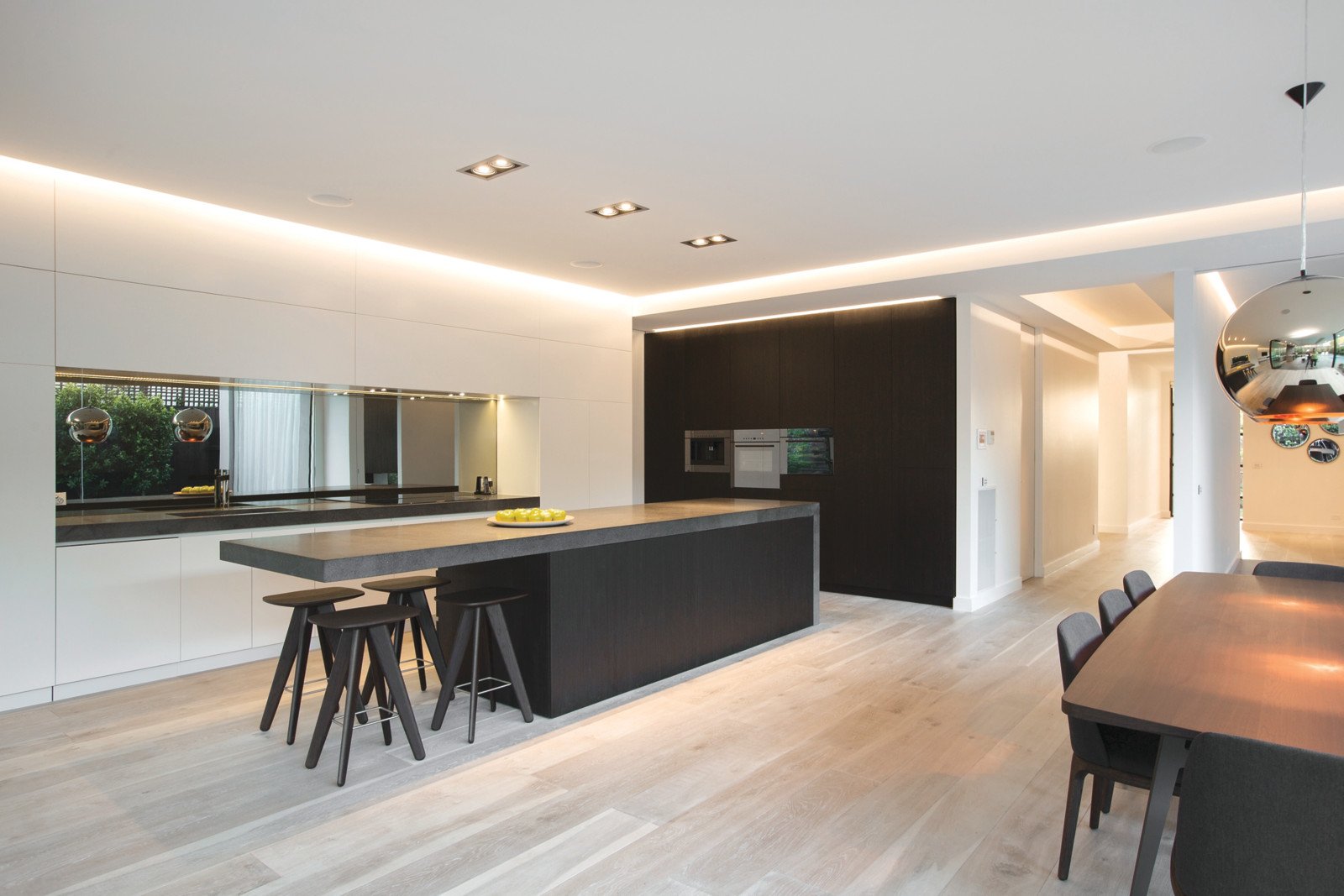 Dramatic voids, soaring 3 metre ceilings, recessed lighting, floor to ceiling glass and wide limed oak floors display the impressive level of finish throughout. The imposing entrance foyer introduces a refined study and serene sitting room with pebble fireplace. Exceptional in scale and design, the expansive living and dining areas with a state of the art Zug kitchen complete with coffee maker, sleek stone bench and butler's pantry open through frameless glass bi-fold doors to a brilliant covered al fresco BBQ terrace, north-facing heated lap pool and landscaped private garden. A stunning main bedroom with lavish en-suite boasting a freestanding stone bath and walk in robe enjoys downstairs seclusion. The sensational children's zone upstairs comprises a large retreat, second bedroom with en-suite and WIR, three further bedrooms with WIRs and a third stylish bathroom. A fabulous home cinema room with built in bar and powder-room and a large gym are on the basement level along side a 8-car garage.
