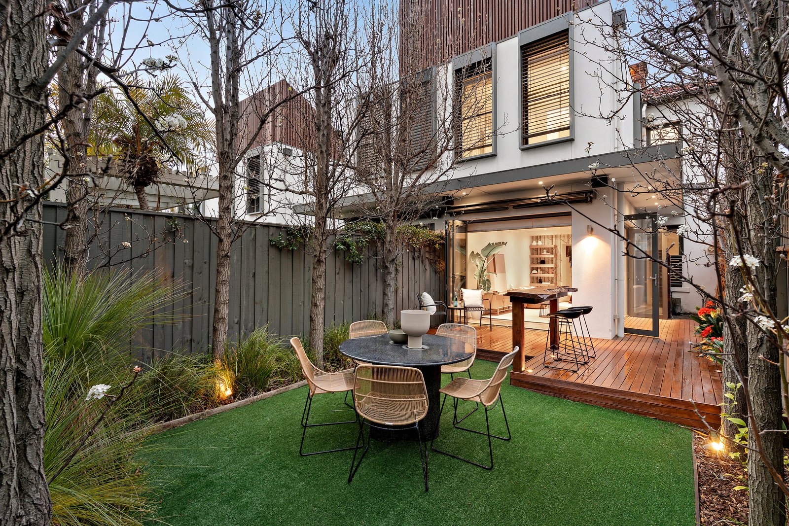 On the cusp of Albert Park Village, mere steps from the light rail, the market, and close to premier schools, this impressive corner-sited residence also includes a powder room, underground water tank, bespoke feature lighting, double glazing, and split-system air conditioning.