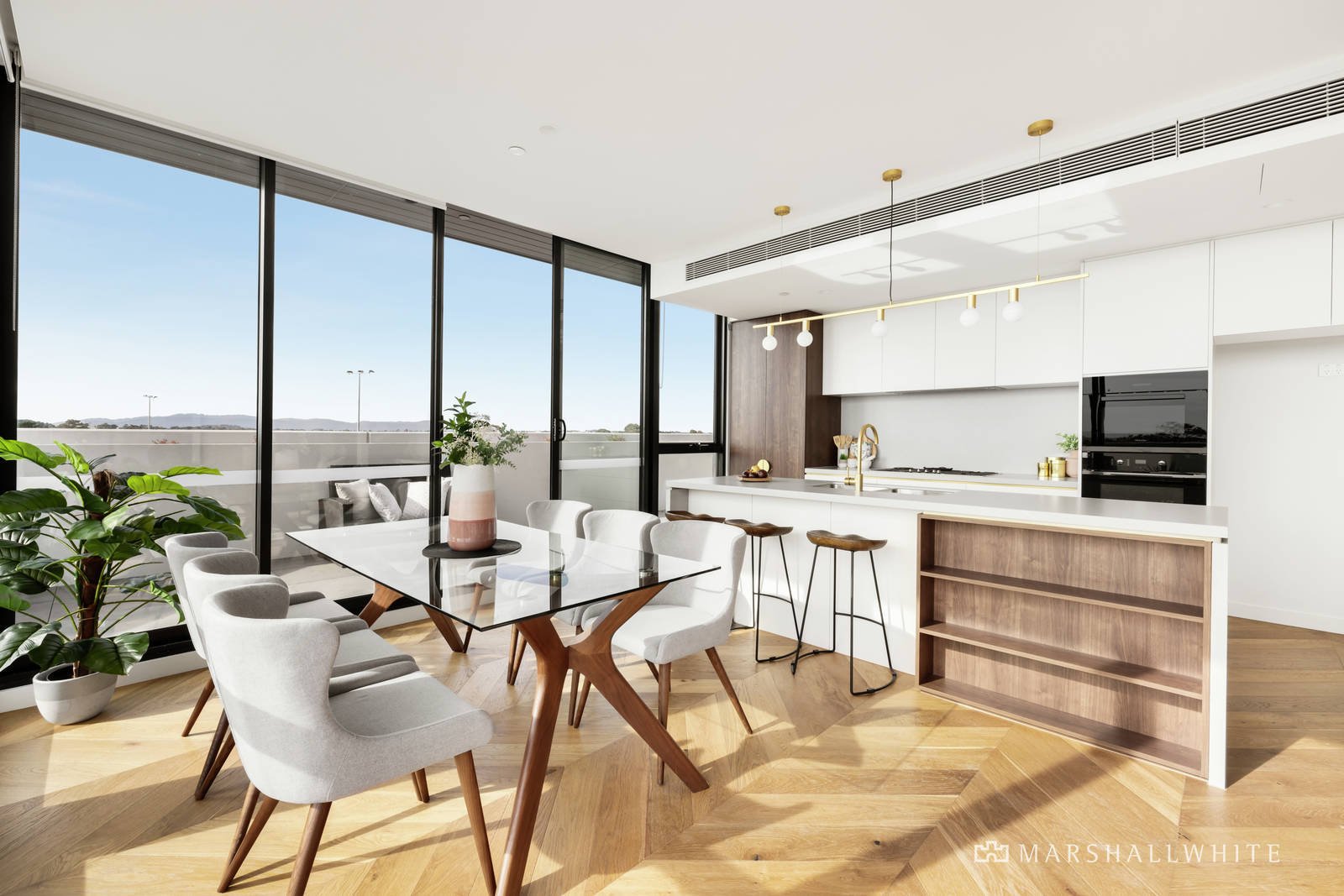 At 117sqm (approx.), this stunning new penthouse apartment offers the dimensions of a house and a beautifully flowing floorplan that emphasises space and light. It's the perfect set-up for families or downsizers who like to host guests, with a variety of features to impress. Designed by renowned architect Clarke-Hopkins-Clarke, each apartment in this noteworthy building has been crafted to maximise space, privacy, light and views that extend to the surrounding ranges.
