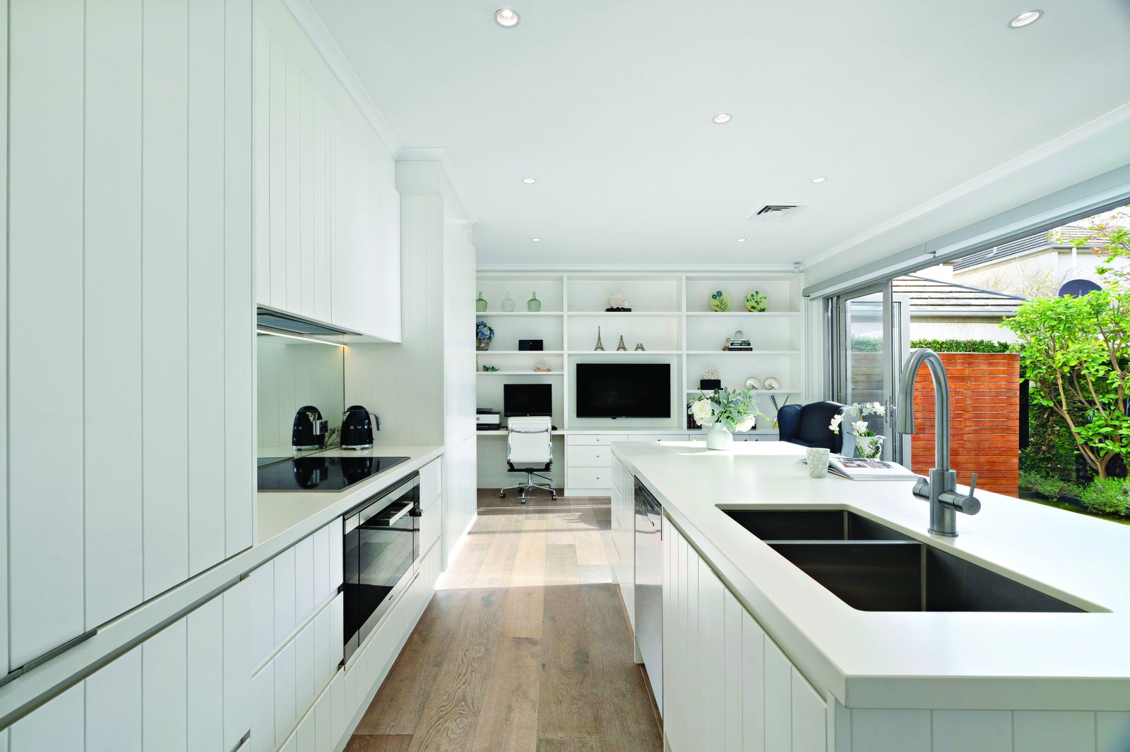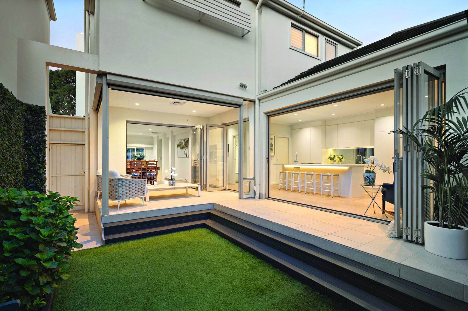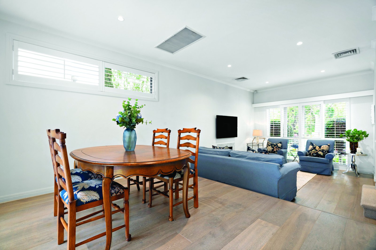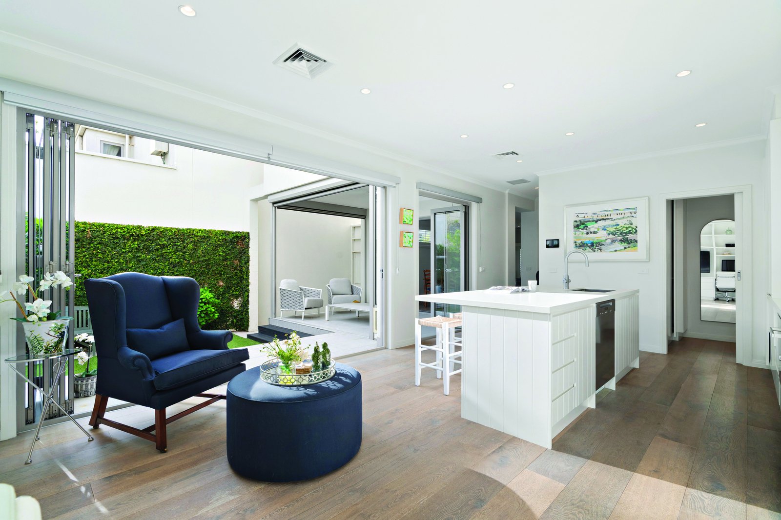 An uncomplicated open-plan flow with sleek, clean lines invites a flawless indoor-outdoor format over two light-filled levels, making the most of its tree-lined outlooks. A central al-fresco dining room with motorised café blinds forms a seamless transition to all-weather entertainment, connecting the formal and informal living and dining rooms through bi-fold doors to the low-maintenance and private gardens beyond. A superbly appointed gourmet kitchen sits central to both zones, fitted with stone benches, zip tap with hot/cold/boiling & sparkling water, mirrored splashbacks and a suite of high-end Miele appliances that includes a dishwasher, induction cooktop and oven, complemented by two integrated refrigerators and one freezer.