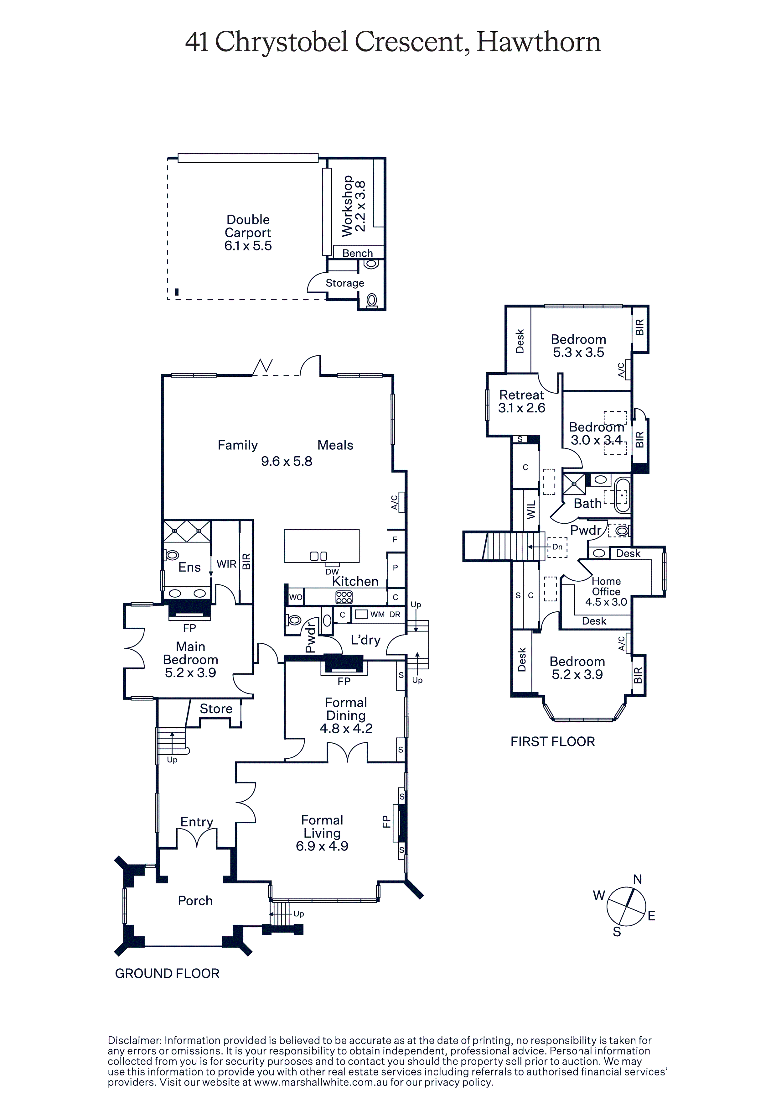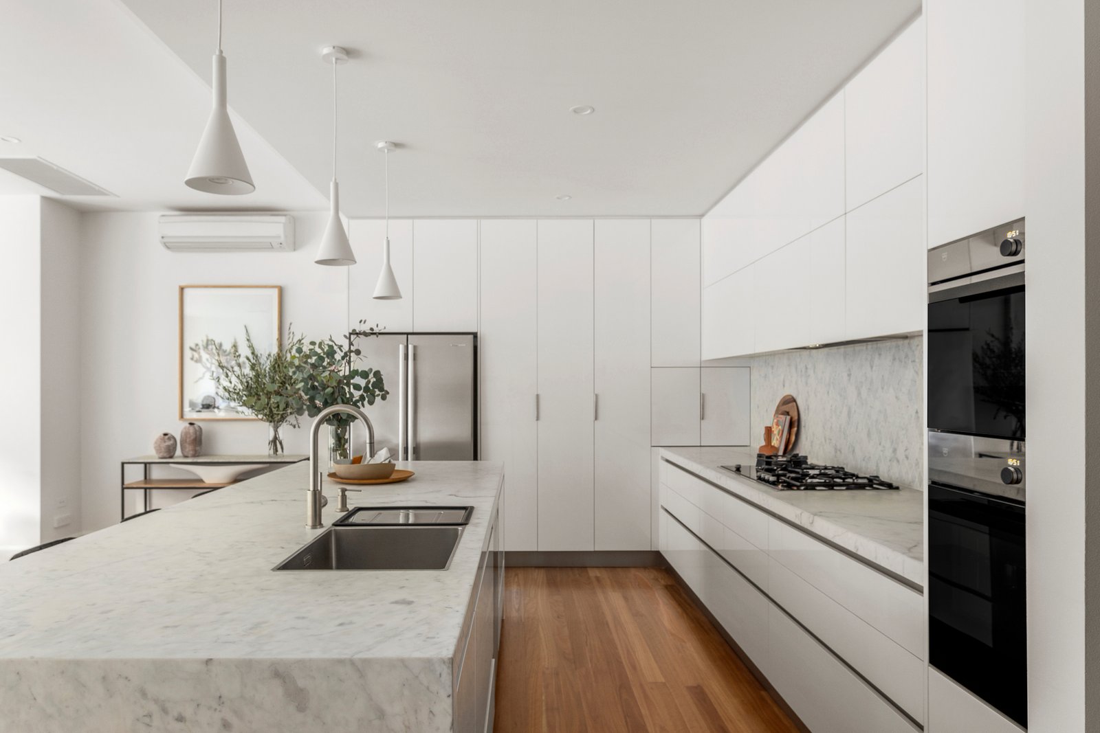 An expansive verandah welcomes entry to the central reception hall, a gracious sitting room and formal dining room featuring ornate ceilings and fireplaces. Timber floors flow through the exceptionally generous open plan family and dining area and sublime gourmet kitchen, a chef’s dream, appointed with V-Zug appliances including combi-steam and combair ovens, soft-close cabinetry and marble benches. Bi-fold doors extend the living area out to a private landscaped north-facing garden oasis with water feature, stone paved terrace and double garage accessed from the rear lane. Intelligently zoned family accommodation comprises a serene downstairs main bedroom with fireplace, bespoke robes and a designer high end en suite with double shower, while in a fabulous children’s zone upstairs there are three additional robed bedrooms, a retreat, impeccably fitted home office and stylish bathroom with separate powder-room.