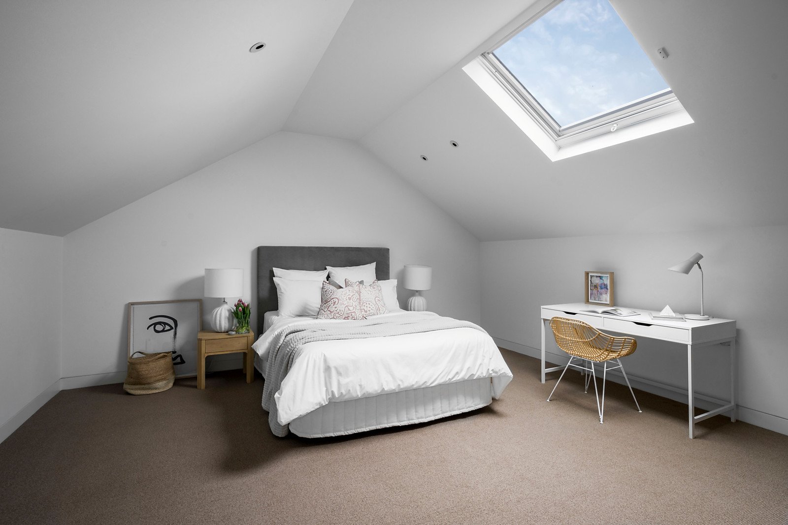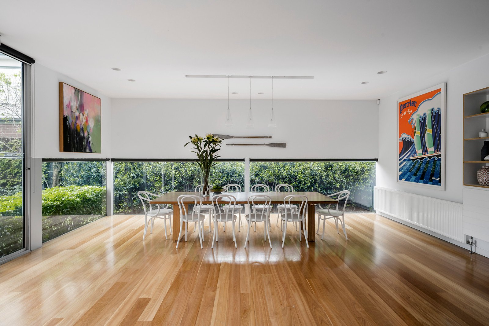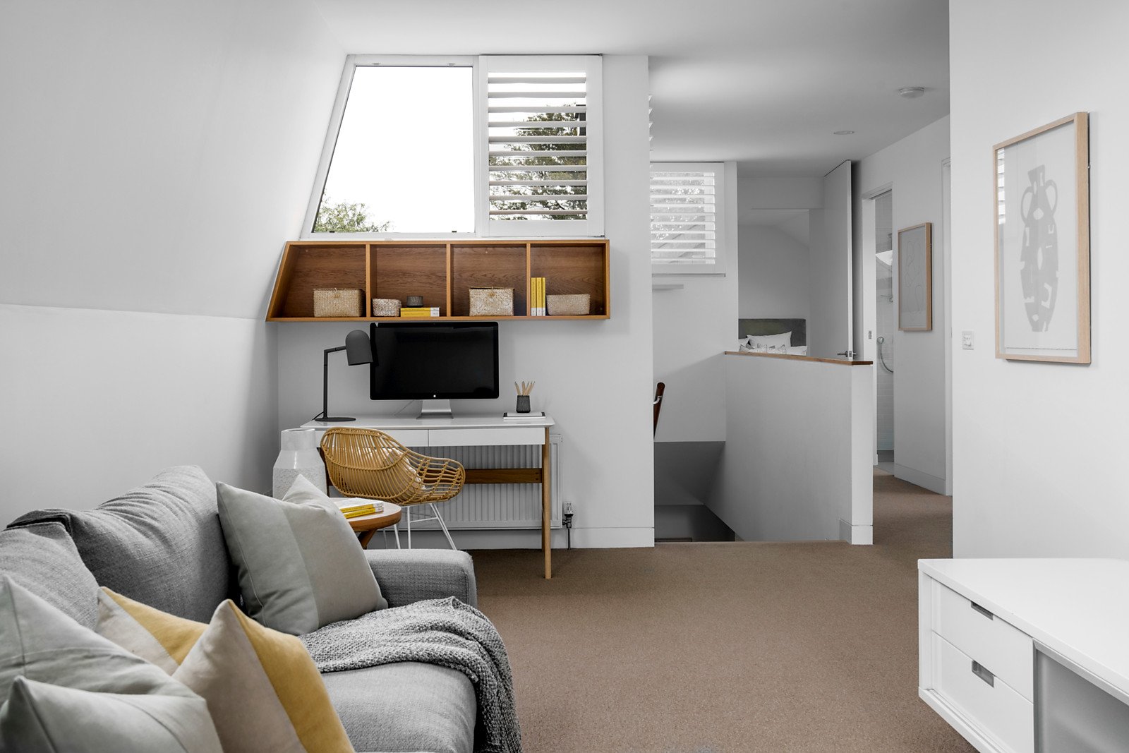 Behind a beautiful, landscaped garden, the wide central hall featuring timber floors introduces three gorgeous bedrooms with pressed metal ceilings and built in robes and a stylish bathroom. The glorious main bedroom with walk in robe/dressing room and chic en suite and views across Lumley Park is upstairs alongside a home office or 5th bedroom with robes and a third bathroom and the flexibility of a bright 2nd living/retreat. Exceptionally high ceilings accentuate the scale of the expansive light filled open plan living and dining room boasting bespoke joinery, a roaring open fire and stunning gourmet kitchen appointed with 90cm Ilve oven and white stone benches with a large breakfast island. Huge glass sliders open the living areas to a private northwest facing landscaped garden, a serene and leafy oasis ideal for al fresco dining.
