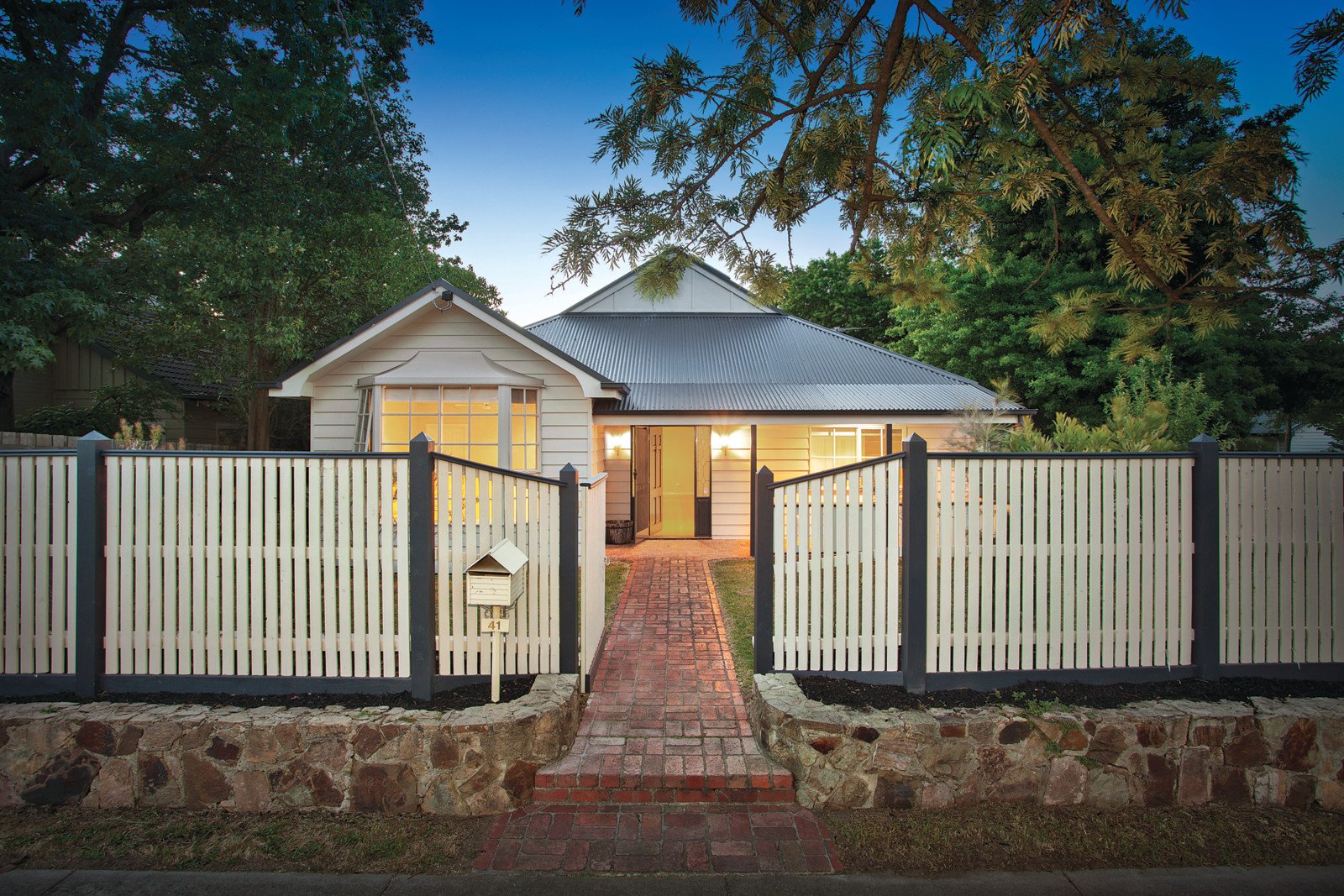 High ceilings and an exceptionally wide timber hallway accentuate the sense of space throughout. Timber floors flow through the inviting sitting room warmed by an open fire, dining room, well appointed modern kitchen with stainless steel appliances and a light-filled and spacious living room. Bi-fold doors extend living out to a large covered entertaining deck overlooking the northwest garden. The sunny main bedroom with window seat, walk in robe and en-suite is complemented by three additional double bedrooms with built in robes and desks and a smart central bathroom.