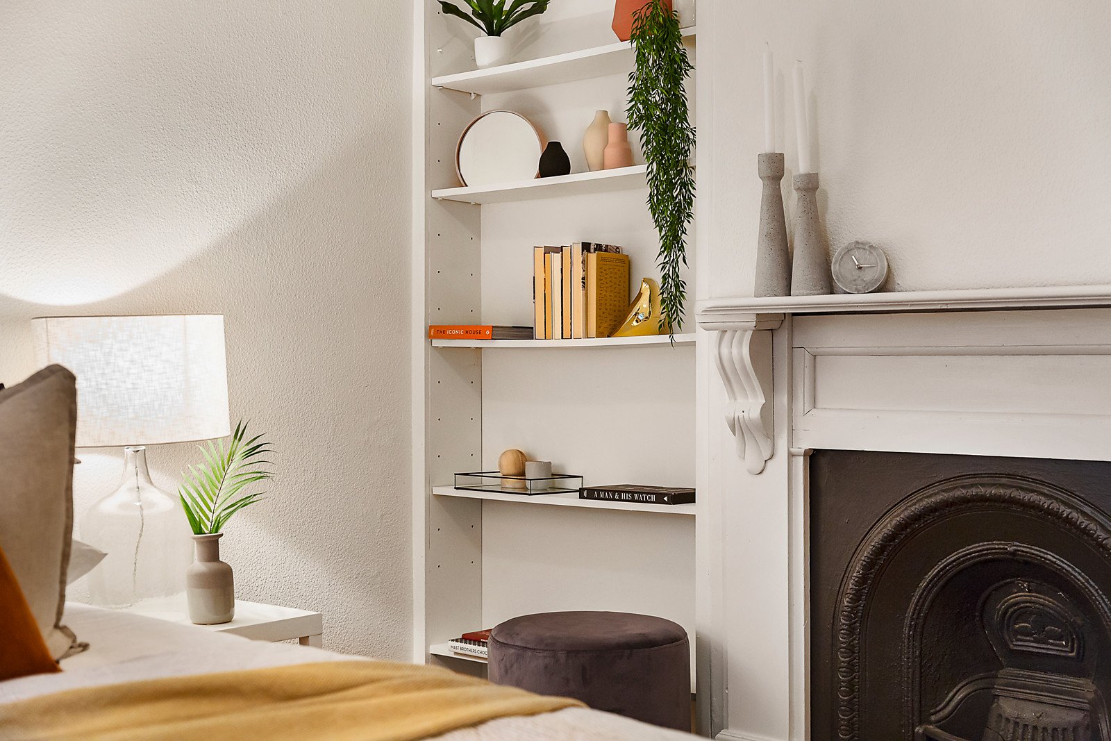 A classic arched hallway featuring Baltic pine floors and high ceilings introduces a beautiful bedroom with open fire and built in robe, a second double bedroom with robe and a bright bathroom. Timber parquetry floors flow through the inviting open plan living and dining room with a superb modern kitchen and French doors opening to a private sunny paved courtyard.