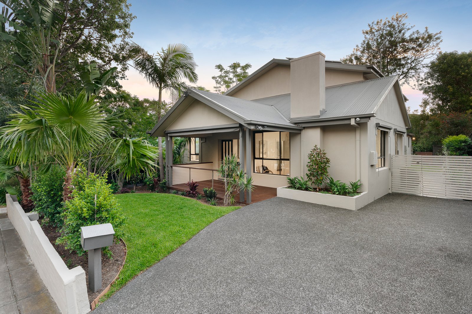 Timber floors flow through the wide central hall, spacious gourmet kitchen with stone benches and stainless-steel appliances and the expansive living/dining room. Stacking sliders connect the living area to a full width undercover entertaining deck with TV and ceiling fans, an idyllic venue for all weather al fresco dining overlooking the private leafy west-facing garden with a versatile freestanding rumpus room or home office. Cleverly zoned family accommodation comprises a double bedroom with study, a second double bedroom and a stylish bathroom on the ground level while upstairs beneath vaulted ceilings there is a lavishly proportioned main bedroom with ensuite, walk in robe and covered west-facing balcony, a 4th robed bedroom and a retreat.