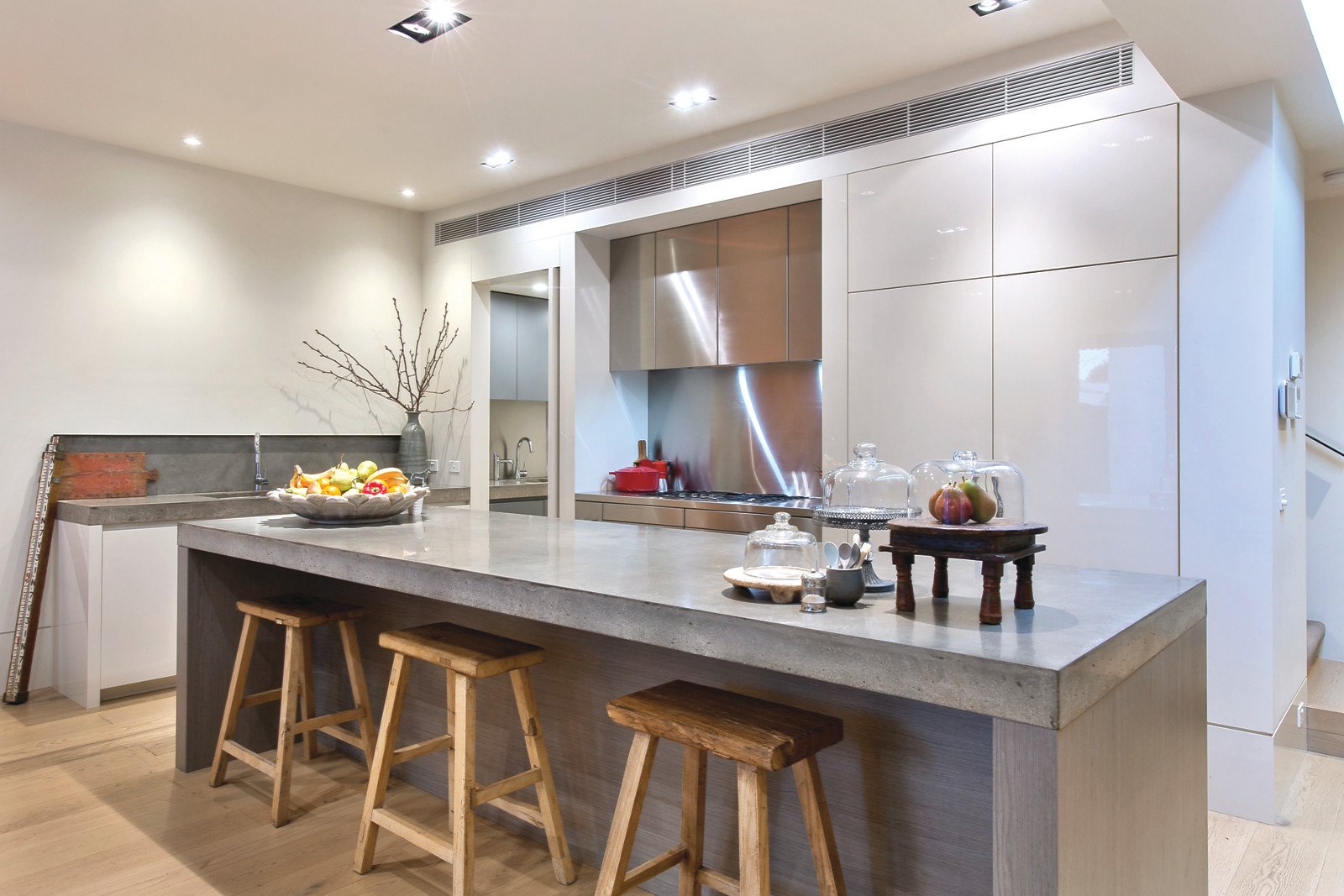 Wide oak floors extend through the arched hallway to the expansive north oriented living and dining space with a full Miele kitchen boasting polished concrete benches and integrated fridge/freezer. Huge sliders open the living out to a private central sun-drenched courtyard. The inviting main bedroom with lavish designer en-suite, ample built in robes and a study area enjoys its own space away from the two beautiful double bedrooms with French doors opening to sunny courtyards and a stylish bathroom.