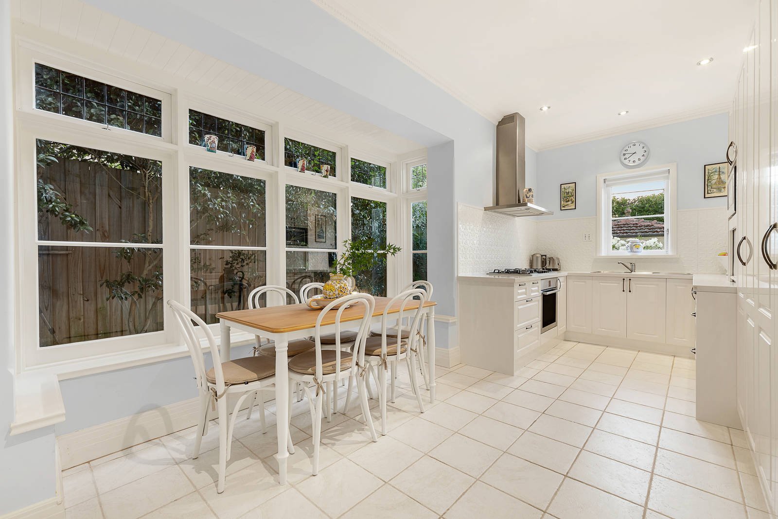 Natural light streams through the generous sitting room with a marble open fire and a beautiful formal dining room. The gourmet kitchen features white stone benches, Bosch appliances and an inviting casual dining area. Timber floors flow through the expansive family room with a clever concealed home office and 2 sets of French doors opening to the deep private northeast leafy garden. The three double bedrooms with built in robes upstairs are accompanied by a pristine original bathroom.