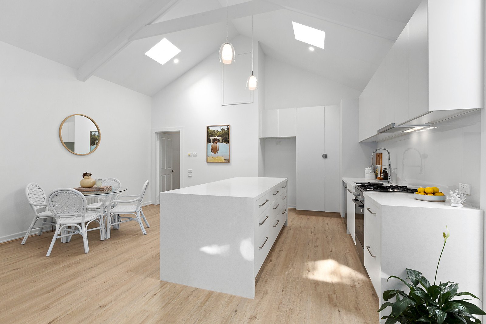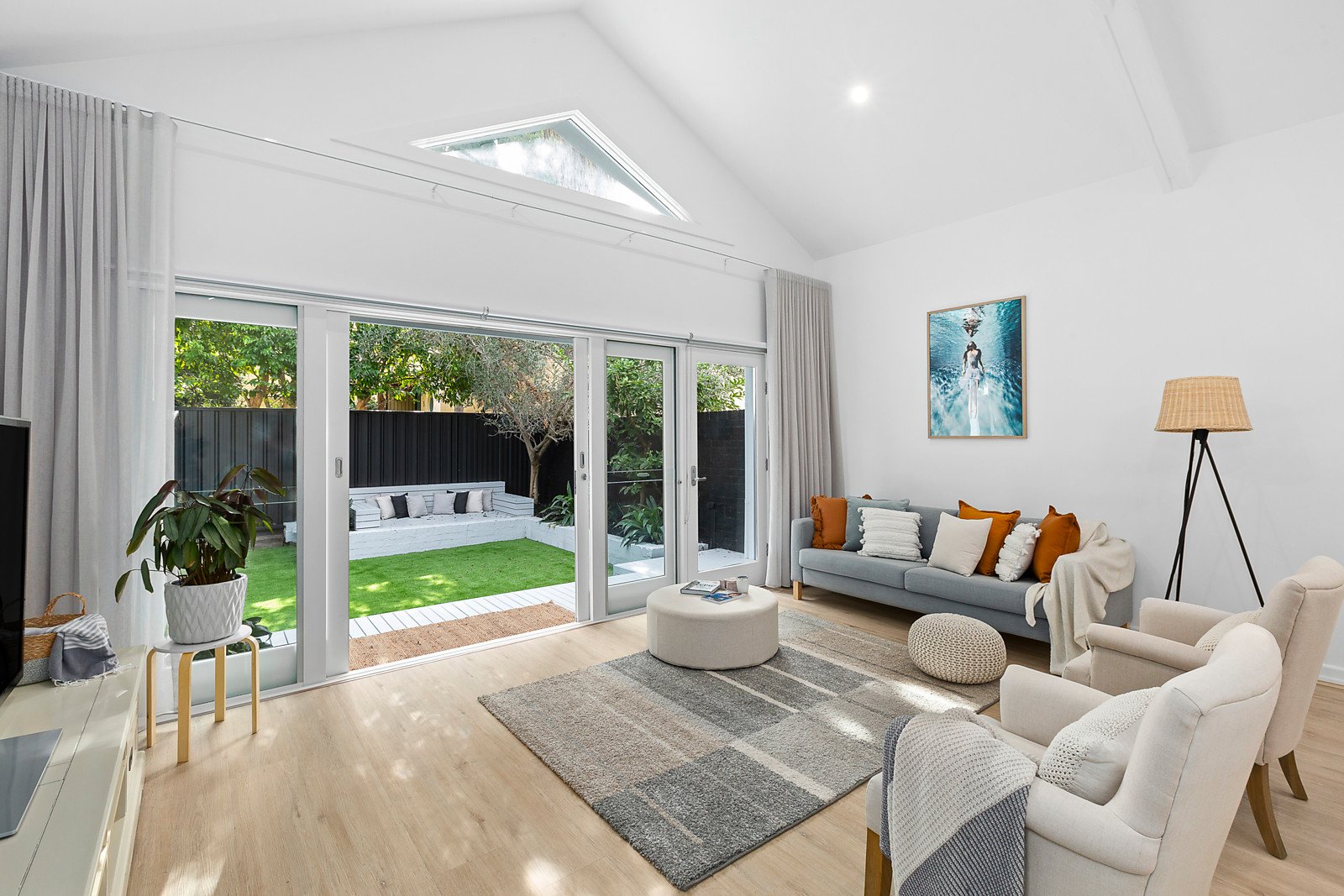 This beautiful free standing period home gives way to reveal spacious accommodation that is flushed with natural light, with the main focal point being the rear entertaining zone. Crowned by soaring sky-lit cathedral ceilings and flowing easily from the luxe stone kitchen, this space extends effortlessly to the sundrenched north-facing deck and grass area, perfect for gathering indoors & out.