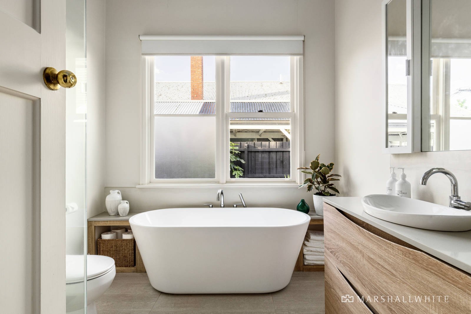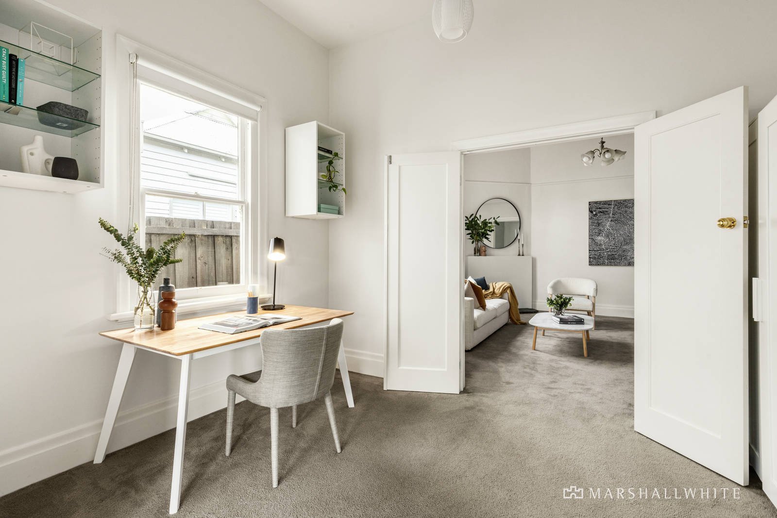 Wide oak floors add a contemporary flavour to the central hallway which flows through to a gorgeous sitting room, versatile home office, gourmet kitchen with stone benches and the generous living and dining room. French doors open the living space to a private northeast garden with large entertaining deck. The three double bedrooms are accompanied by a stylish bathroom with bath.