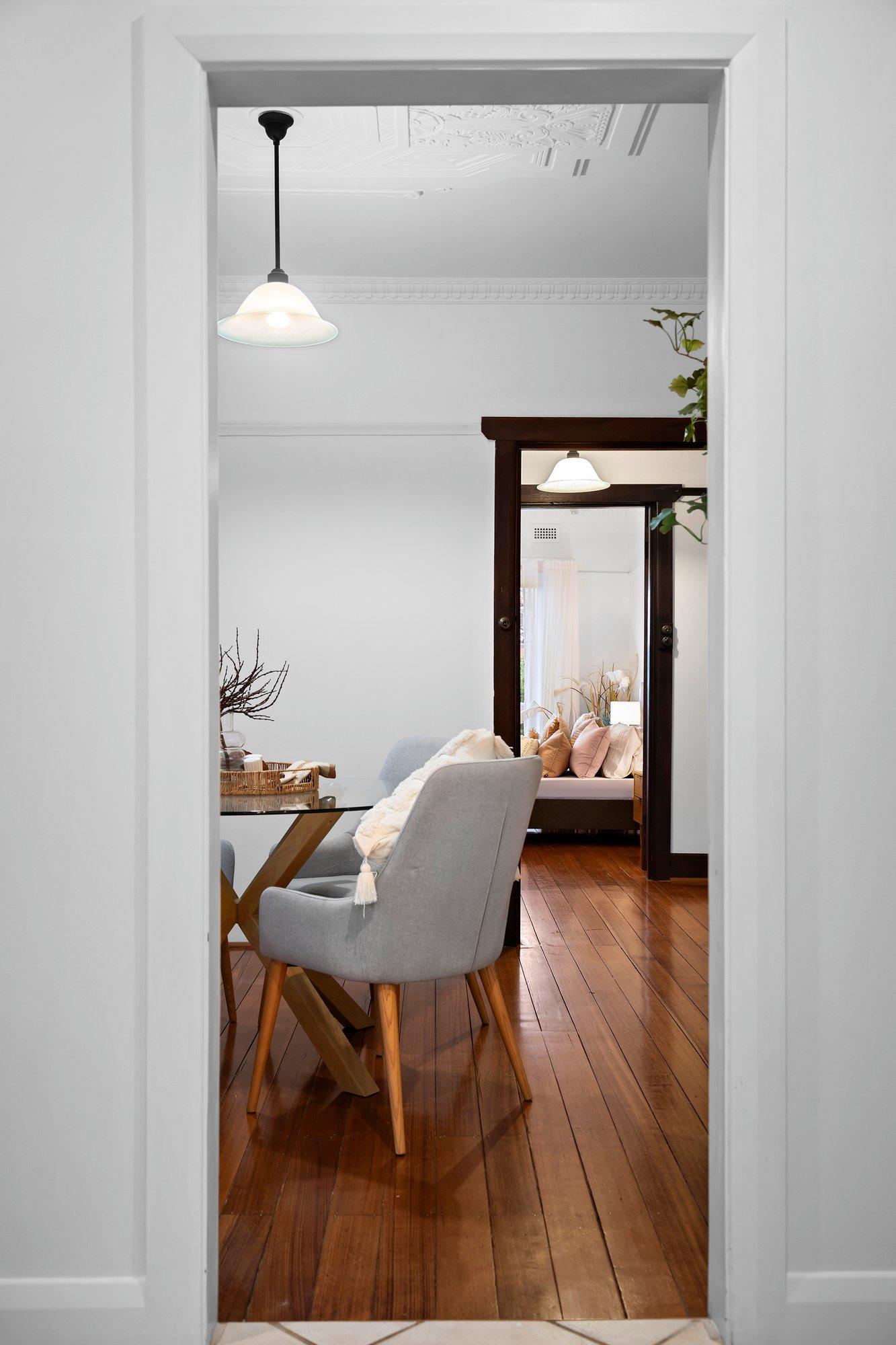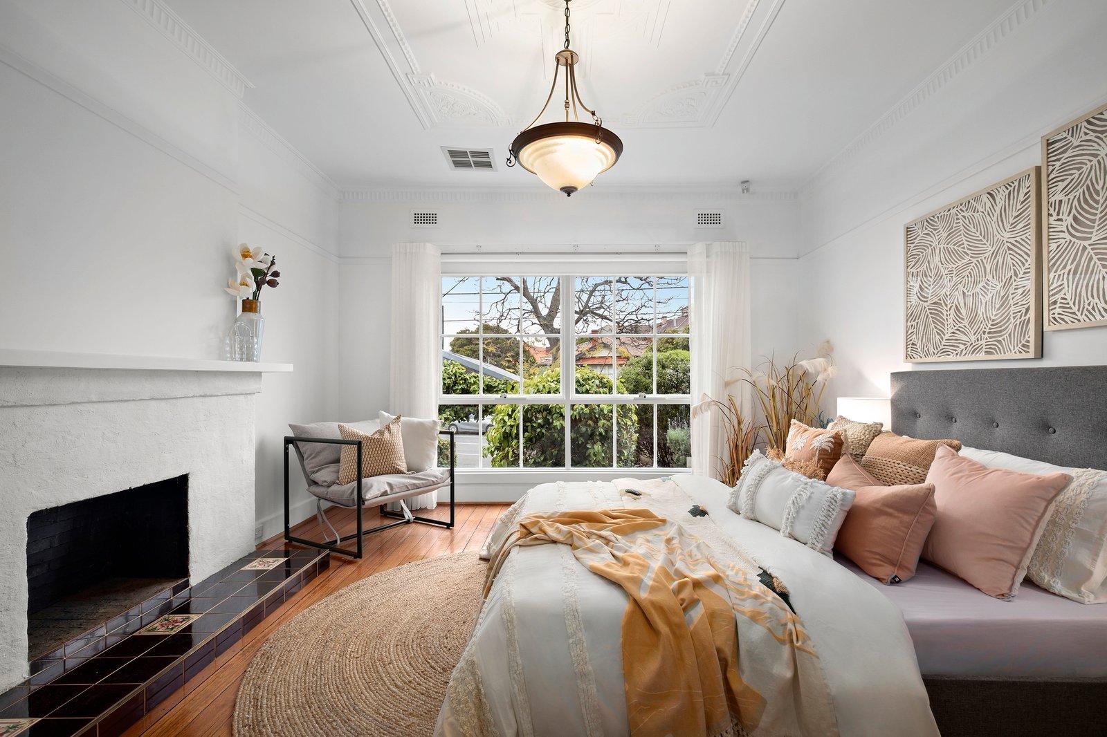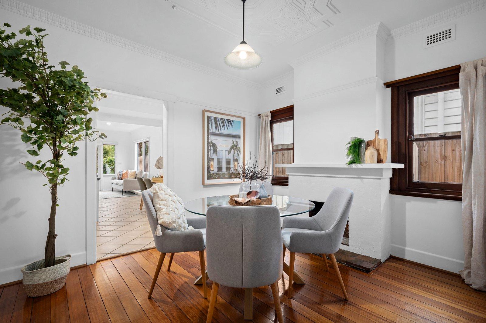 A traditional entry, with a security screen door, introduces leadlight glass, polished timber floorboards, and freshly painted interiors. Classic Art-Deco details include striking plaster roses on soaring ceilings, ornate cornices, and original fireplaces. The adaptable layout comprises the front main bedroom (or second living) which has delightful garden outlooks through large multi-paned windows, matched in the second bedroom with built-in robes. The third bedroom also has a built-in robe while the central gleaming tiled bathroom has an over-bath shower. A formal dining room could also work as a work-from-home space or sitting room, and the spacious open-plan living and meals area incorporates the well-equipped kitchen with a Miele oven, a Blanco gas cooktop and an Omega dishwasher. Outside, there is a renovated bungalow, perfect as a home office, studio or teenager retreat, and extensive recycled red brick paving defines an alfresco dining area while a lush lawn, that receives plenty of northerly sun, is bordered by well-established garden beds.