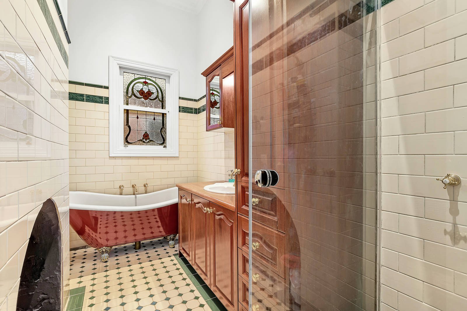This most attractive home has a traditional floorplan with three bedrooms with open fireplaces, robes and all period features intact; the bathroom with separate bath is in a classic Victorian style and the toilet is located adjacent the laundry.