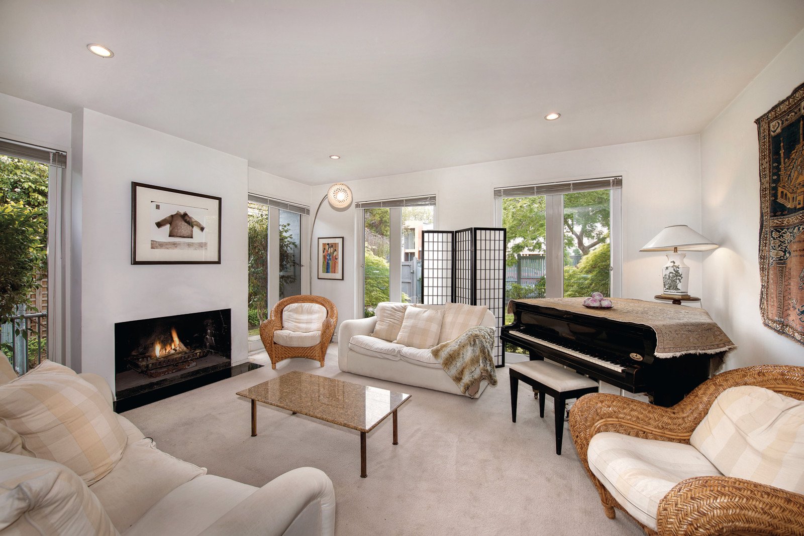 Two storeys of architect-designed style offer comfortable and easy enjoyment for now, with two living areas looking out to courtyards, sun-filled kitchen, north-facing orientation, and secure entry. This one-owner home has a generous main bedroom with ensuite and balcony access, study with an atrium courtyard view, Jetmaster fireplace, air conditioners and zoned underfloor heating.