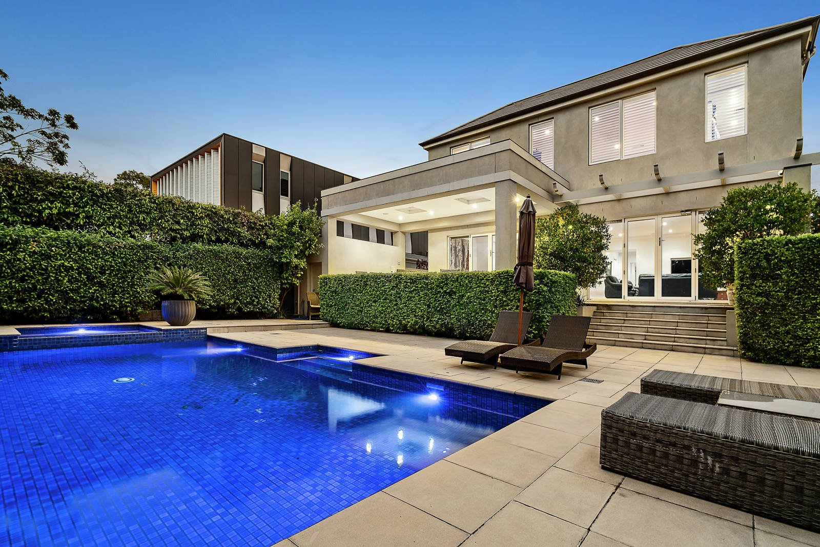 Palatial and timeless with Provencal inflections, this architecturally designed tri-level family home has all the luxurious appointments and amenities of a boutique 5-star hotel. The 6 bedroom, 7 bathroom residence is set over three equally-impressive floors united by a wide staircase with a hand-crafted Tasmanian Oak and iron-work balustrade. The welcoming, light-filled entry zone is a celebration of soaring ceilings and wide open spaces. Picturesque outlooks to serene garden vistas are captured through towering double-glazed windows in formal and informal living and dining areas. French Oak floors laid in a herringbone pattern add to the Provencal appeal. The stone kitchen with butler's pantry has a vast central island with double-sink and integrated dishwasher. The appliances, including two ovens, are S/S Miele. Opening from the kitchen and family dining area, an outdoor terrace overlooks the Azure-tiled swimming pool and spa with a central sculptural urn providing an elegant focal point in the private, fully-landscaped rear garden. With six bedrooms, including a Grand Master Suite, a Guest Suite, two further suites, plus another two good-sized rooms with BIRS, there are plenty of live/work/study options for an evolving family. The 7 luxuriously-appointed marble wet-rooms range from the basement powder-room to the lavish upper-level bathroom in the Grand Master Suite. The timber flooring continues through this spacious suite, which also comprises a private study and a full-length walk-in robe, affectionately referred to as 'the bowling alley'. The lower level is 'entertainment central' and includes a home theatre with two rows of 'gold class' seating and an 11-foot screen with professional projection technology and full-surround sound. Next door is the 'billiard room', with plenty of cue-shooting space and a custom-built bar set-up. The adjoining wine-cellar is currently home to 270 bottles of fine red. There is access from the lower level to the under-house garage, where the home-gym is set up, plus there's a large workshop area and room for up to 3 cars and a good-size boat. Additional features include a fully-automated digital sensor lighting system, centralised climate control, security alarm system, and an abundance of storage spaces. The ideal location is in walking distance to four leading private schools, Bay Street, Hampton Street and Brighton beach.