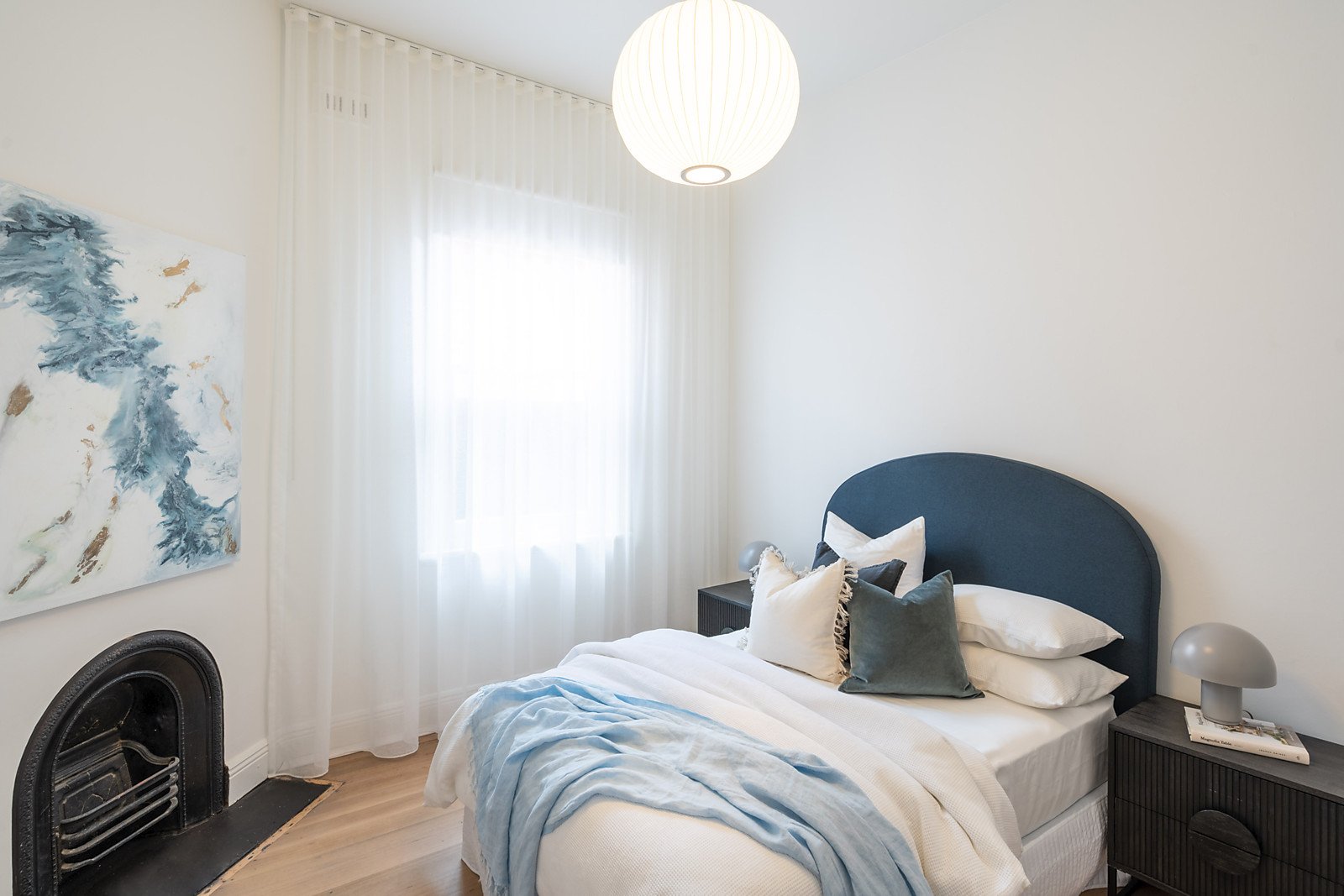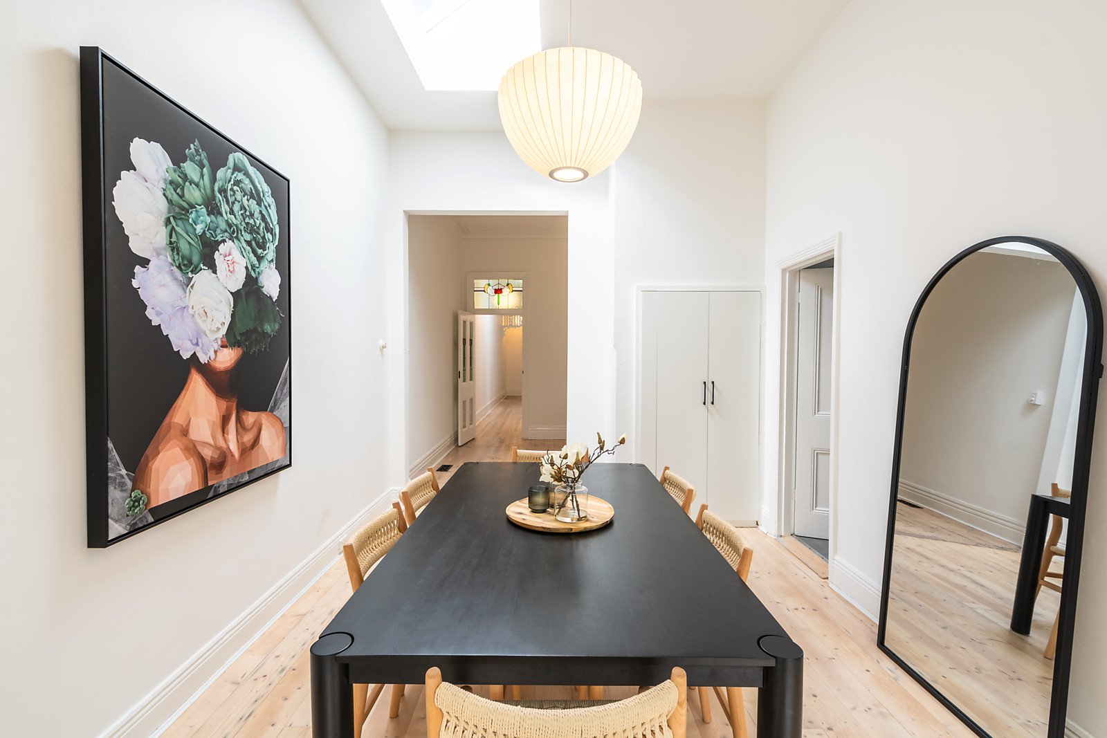 The traditional solid brick façade reveals equally classic Baltic pine hallway featuring ultra high ceilings and leading to an oversized front sitting room that enjoys stunning lead light bay window and doubles as an additional master bedroom. Two good-sized bedrooms with BIRs then proceed to living room enjoying cosy fireplace and light filled dining room opening to the sunny terraced garden beyond.