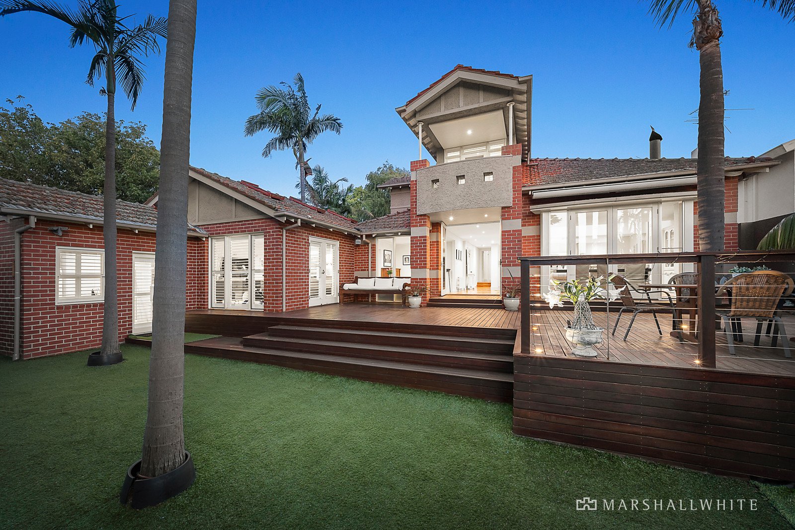 Bordering Whyte Street Reserve and with your own access onto its wide open spaces, this fine home on 790sqm approx. is outstanding for a relaxed Brighton lifestyle. The beauty starts with the generous frontage and classic brick Californian exterior, and continues into two large living zones that open onto an easy-care garden and large deck. This is perfect for families wanting five bedrooms plus study, the option of an upstairs teenage retreat with park views, a ground-floor main bedroom with an ensuite, and a convenient address metres from Church Street and an easy walk to Middle Brighton station and schools. Updated and extended with care, there's a family-size kitchen with two Smeg ovens, a floorplan that can adapt as your family needs change, and an additional study space upstairs to work from home. Generous storage has been created on both levels, there's plantation shutters, remote-control gates and intercom entry, hydronic heating, an efficient wood fireplace, and air conditioning. The perfect choice for now with scope to add a contemporary edge to this pristine home.