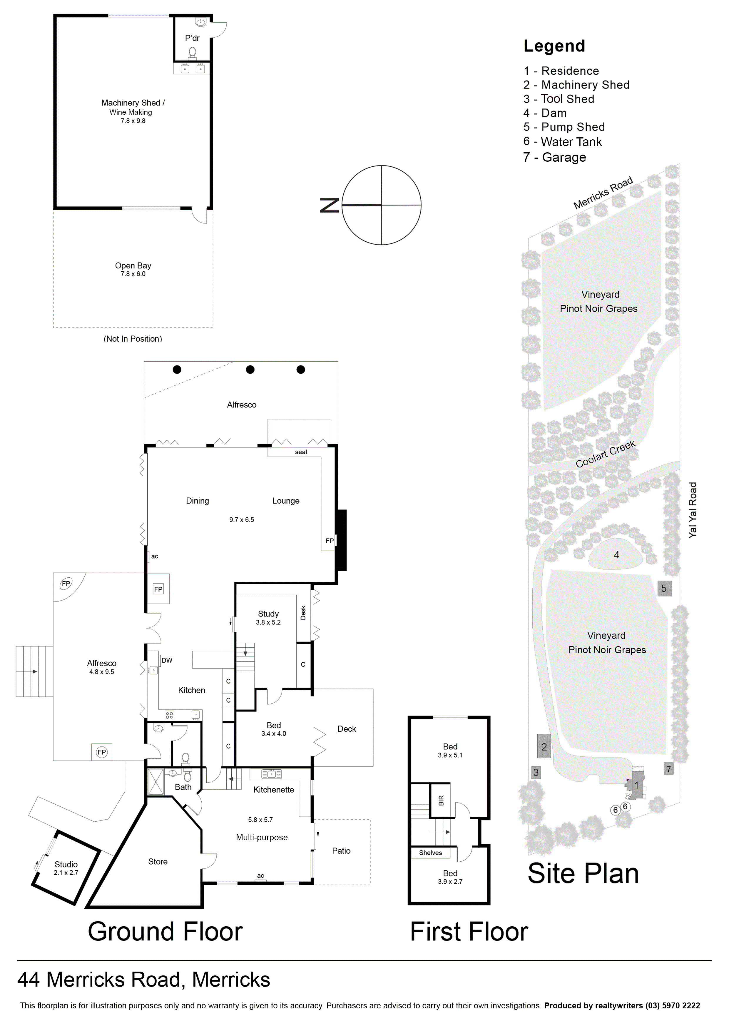 Additional features include a Euro laundry, a converted shipping container studio with heating/cooling, rooftop solar panels, and a range of outbuildings including a large auto-door machinery shed/garage that is currently fully set up for commercial winemaking (the sale of all vineyard and winery equipment to be negotiated separately). The winery and residence/cellar door are licenced under a Producer's licence which can be transferred to the new owner - subject to conditions. There is also a series of rain water tanks, a dam, and the property holds a water pumping licence.